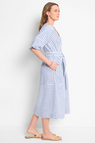 Double Gauze Mixed Stripe Dress- Blue Multi