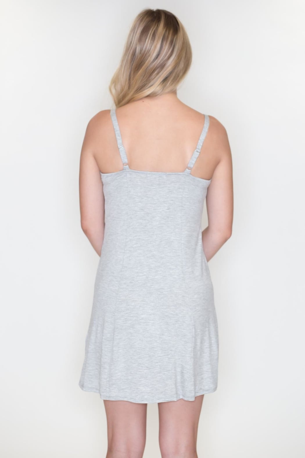 Loose fit, scoop V-neck, tank button down dress. Buttons are non-functional. Adjustable straps. Has princess seams at front and back. This dress is made with heavyweight knit jersey that is very soft, drapes beautifully, stretches very well, and is not sheer.