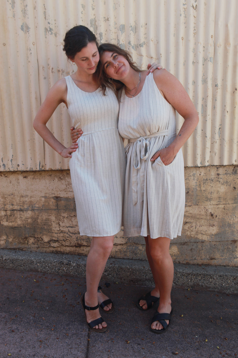 Made from an oat & black striped linen / rayon blend mid weight fabric.