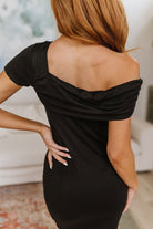 Achieve effortless style with the unmistakable Head Over Heels Asymmetrical Neckline Dress. Featuring a body-con silhouette and effortless jersey knit fabric, this perfect little black dress will have you looking your best. With its modern asymmetrical neckline, and single off-the-shoulder design this dress stands out. Look and feel fabulous—Head Over Heels!