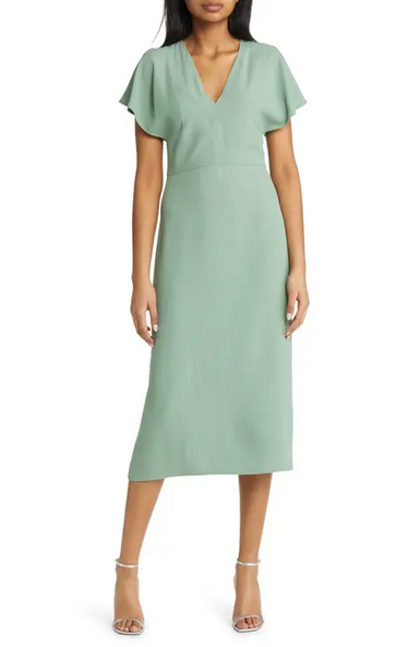 A feminine Dawinga dress by Hugo BOSS Womenswear, cut to a slim fit with a long length and topped with a plunging V neckline. Zip closure, short sleeves, fully lined, slits on side of sleeves.