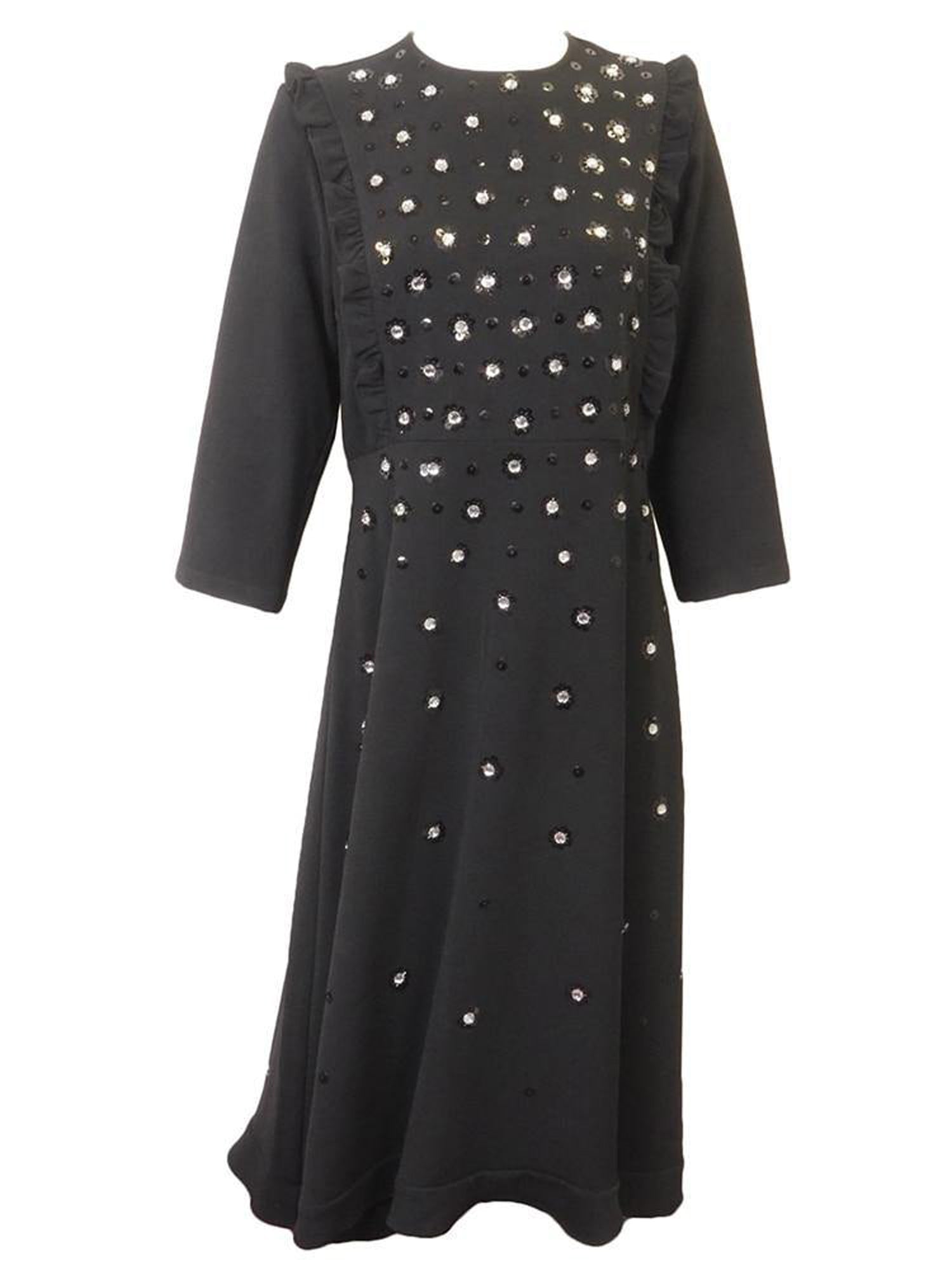 Crepe dress with floral rhinestones & sequin design and three quarter sleeves