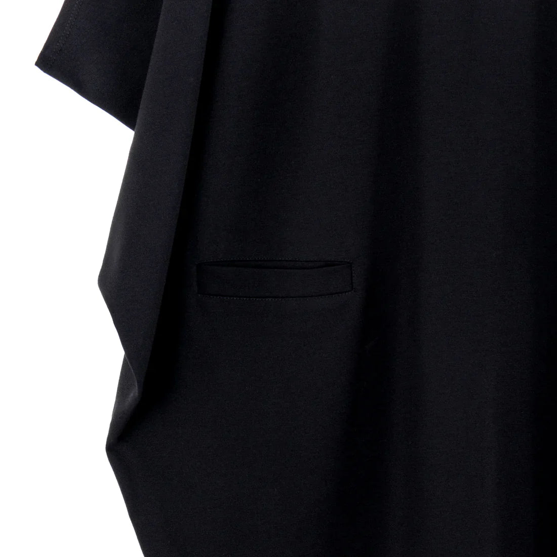 Our Rayon-Ponte Architectural Tunic Pocket Dress is the epitome of chic and minimalist aesthetic combined! This unique tunic dress features a scoop neckline, short batwing sleeves, a right-side front pocket, a left, diagonal seam that modernizes the silhouette, and a slightly curved hemline that narrows in on the body to create an innovative architectural shape.
