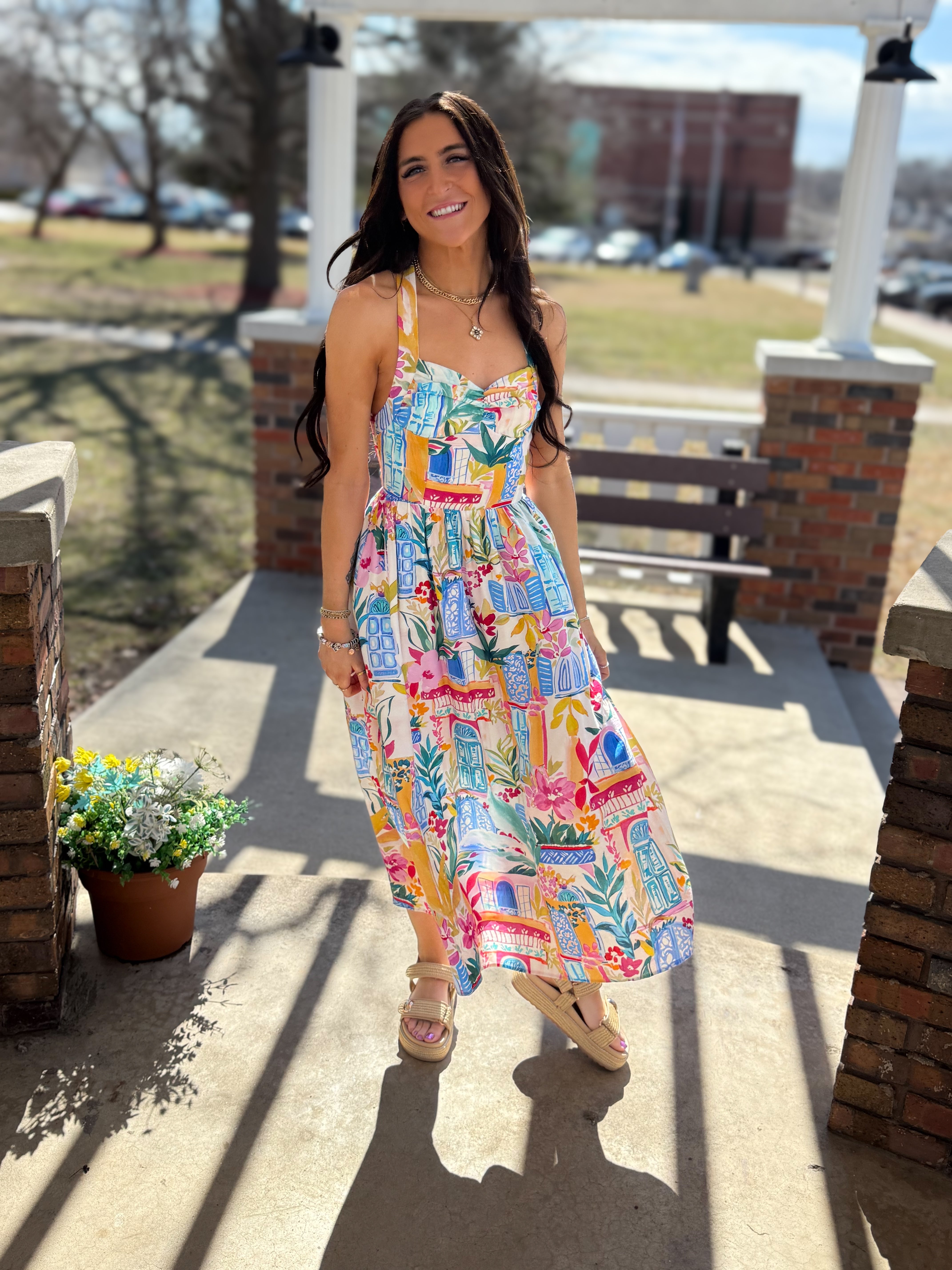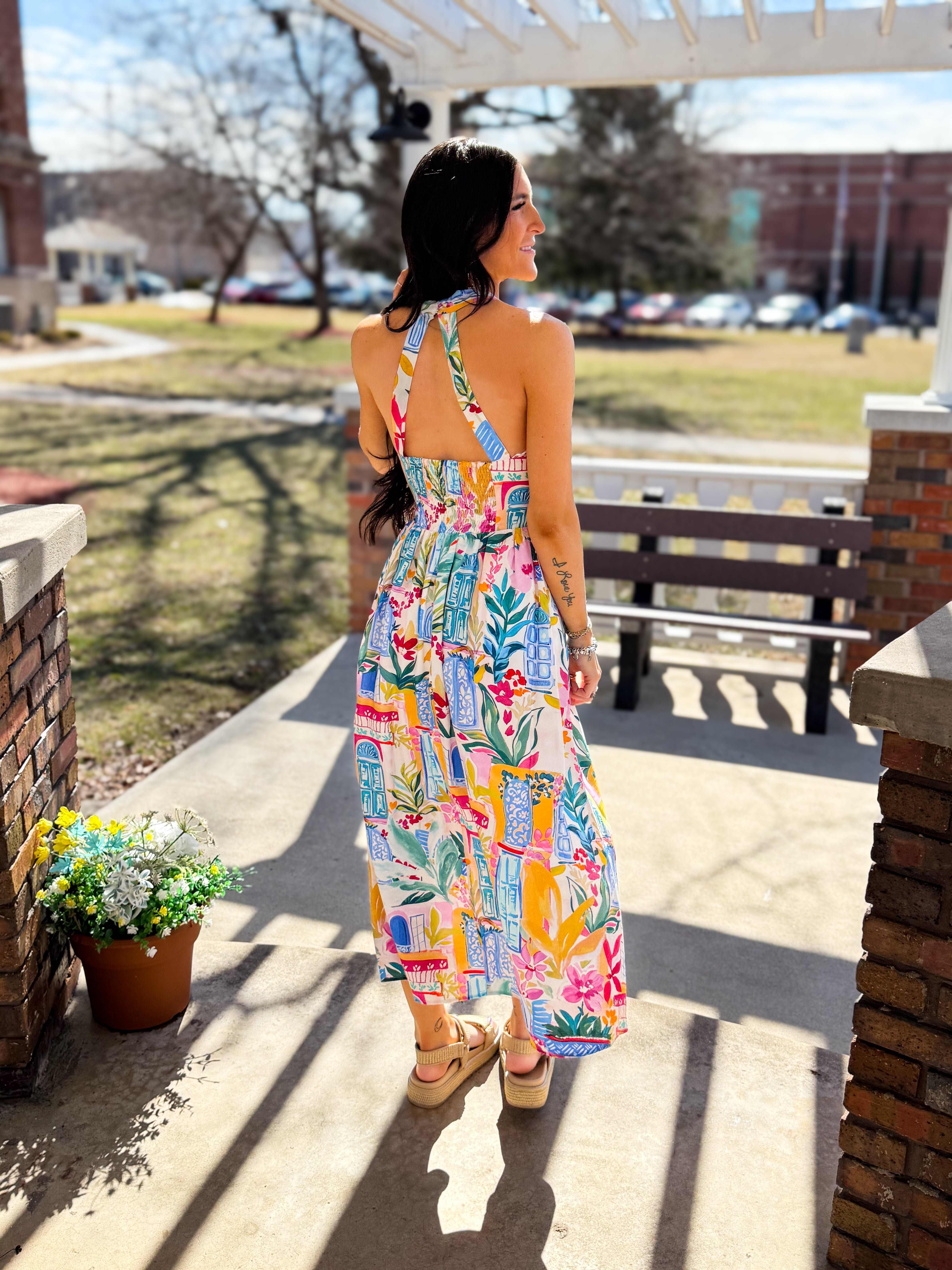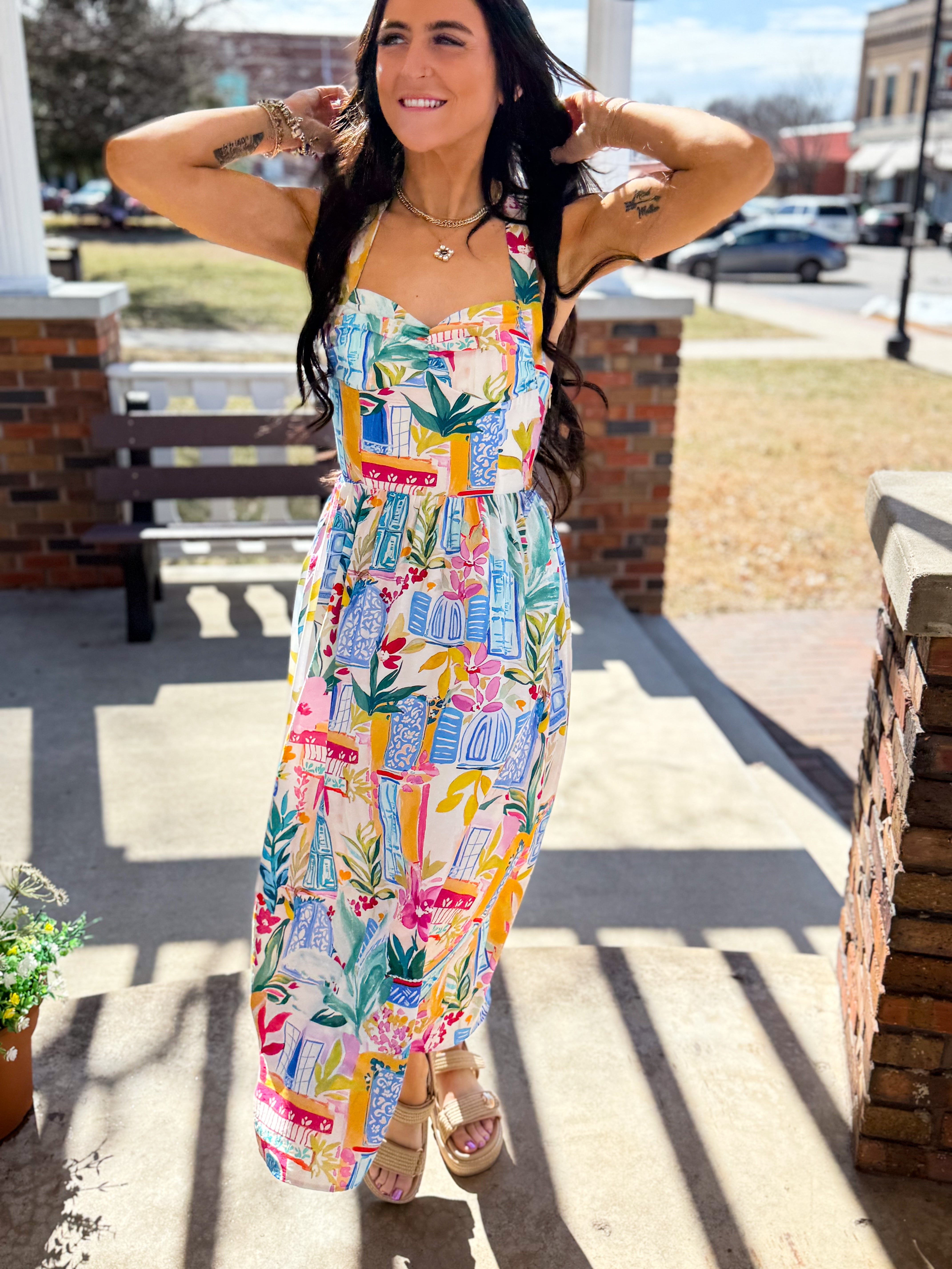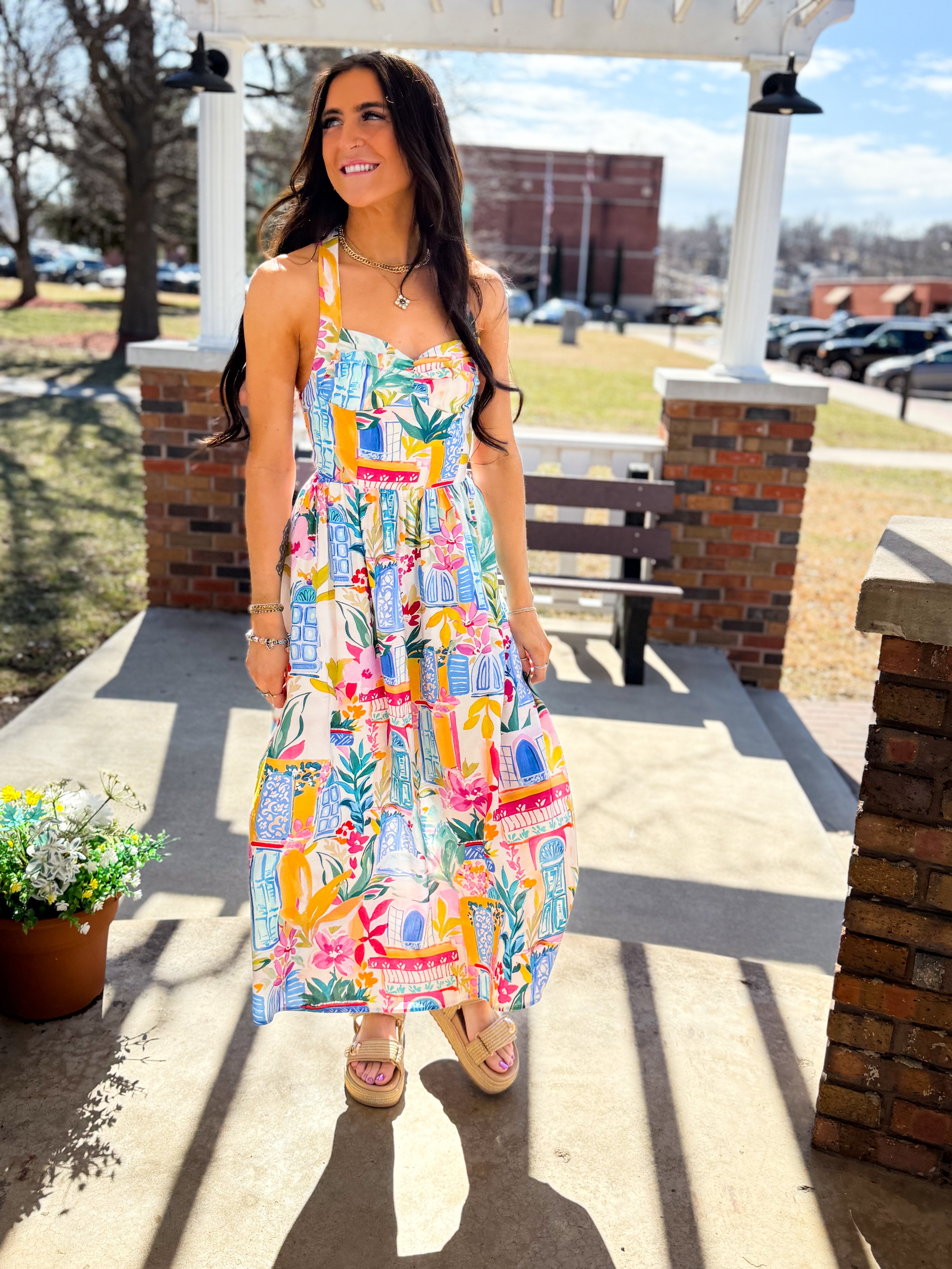 Long Summer Halter Neck Midi Dress