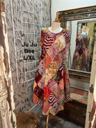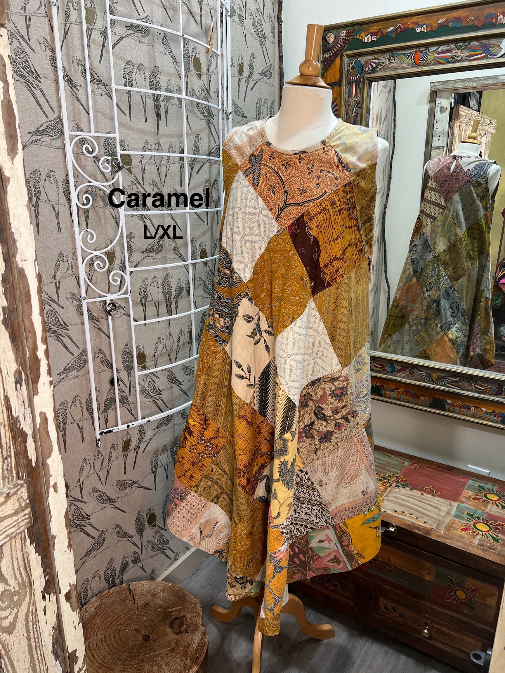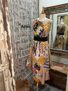 Slip into style with the Lulu Patchwork Dress by Jaded Gypsy. This playful piece features a pull over design, button back closure, and a low scoop neck for a unique and comfortable fit. The v cut hem adds the perfect touch of personality to this sleeveless dress. Get ready to turn heads with this quirky and fun addition to your wardrobe!