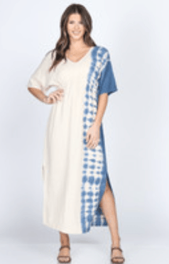 Has there ever been a more comfortable dress? This cotton double gauze fabric is a dream and the tie-dye process makes it even better! A classic border tie dye maxi dress, perfect for this coming Summer!