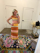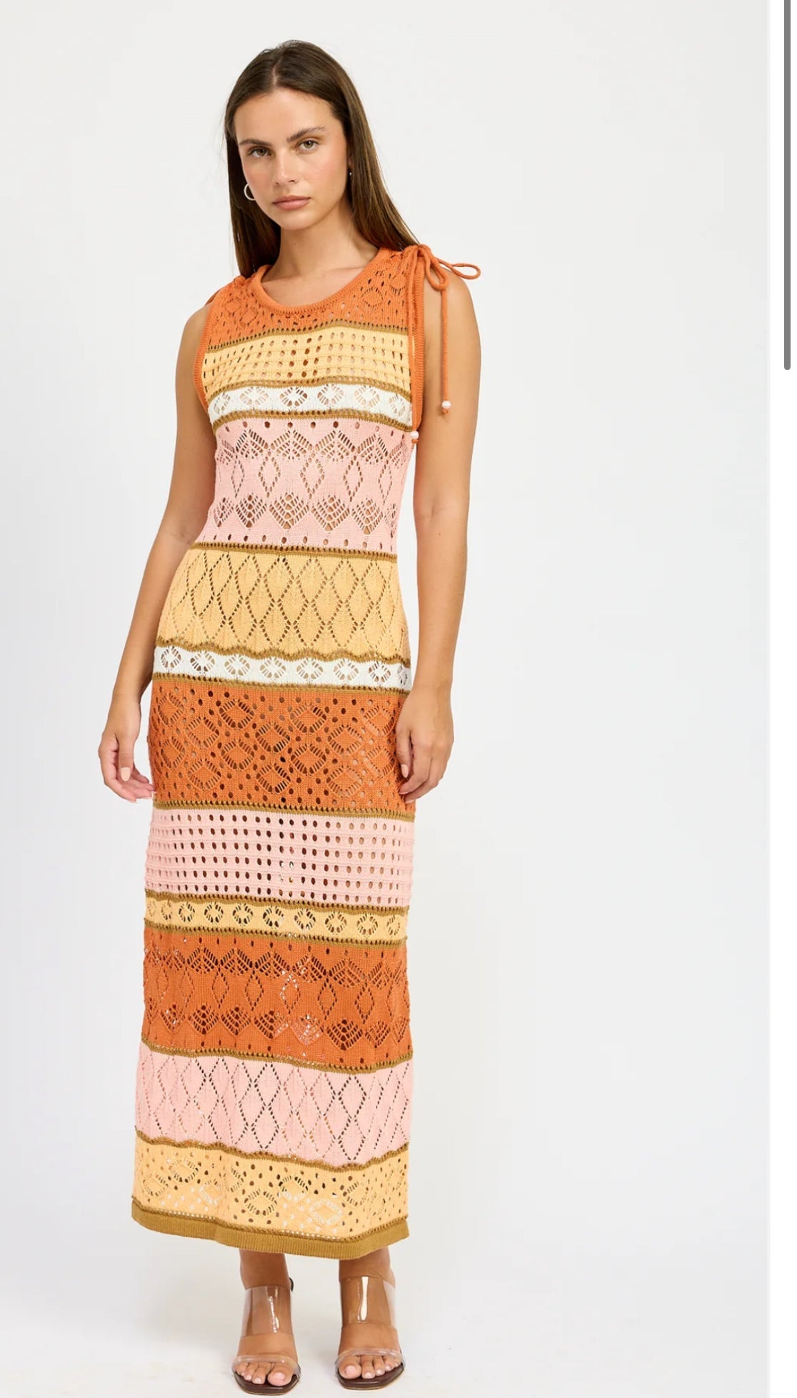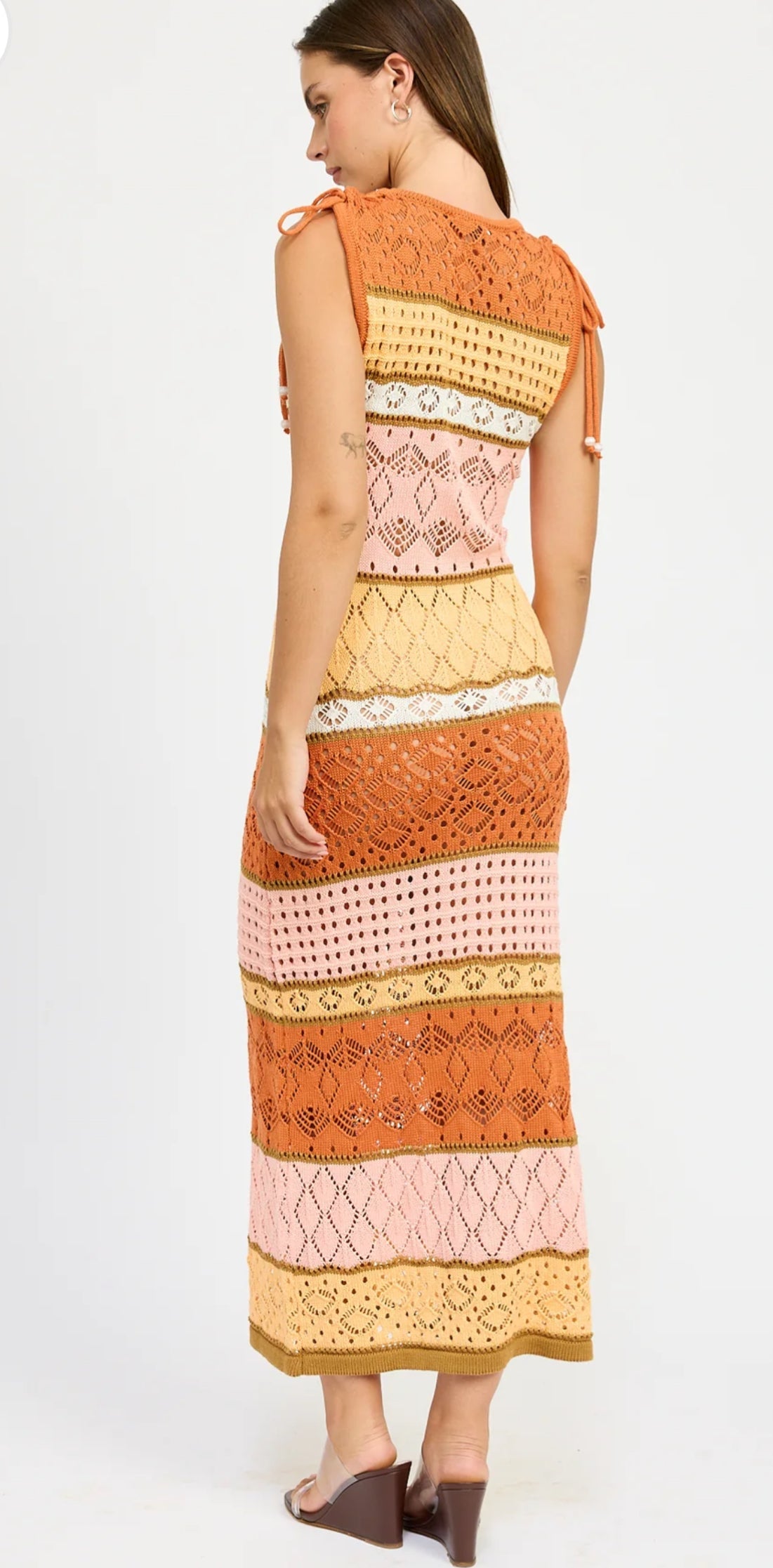 • Crochet Multicolor Dress With Shoulder Tie Details