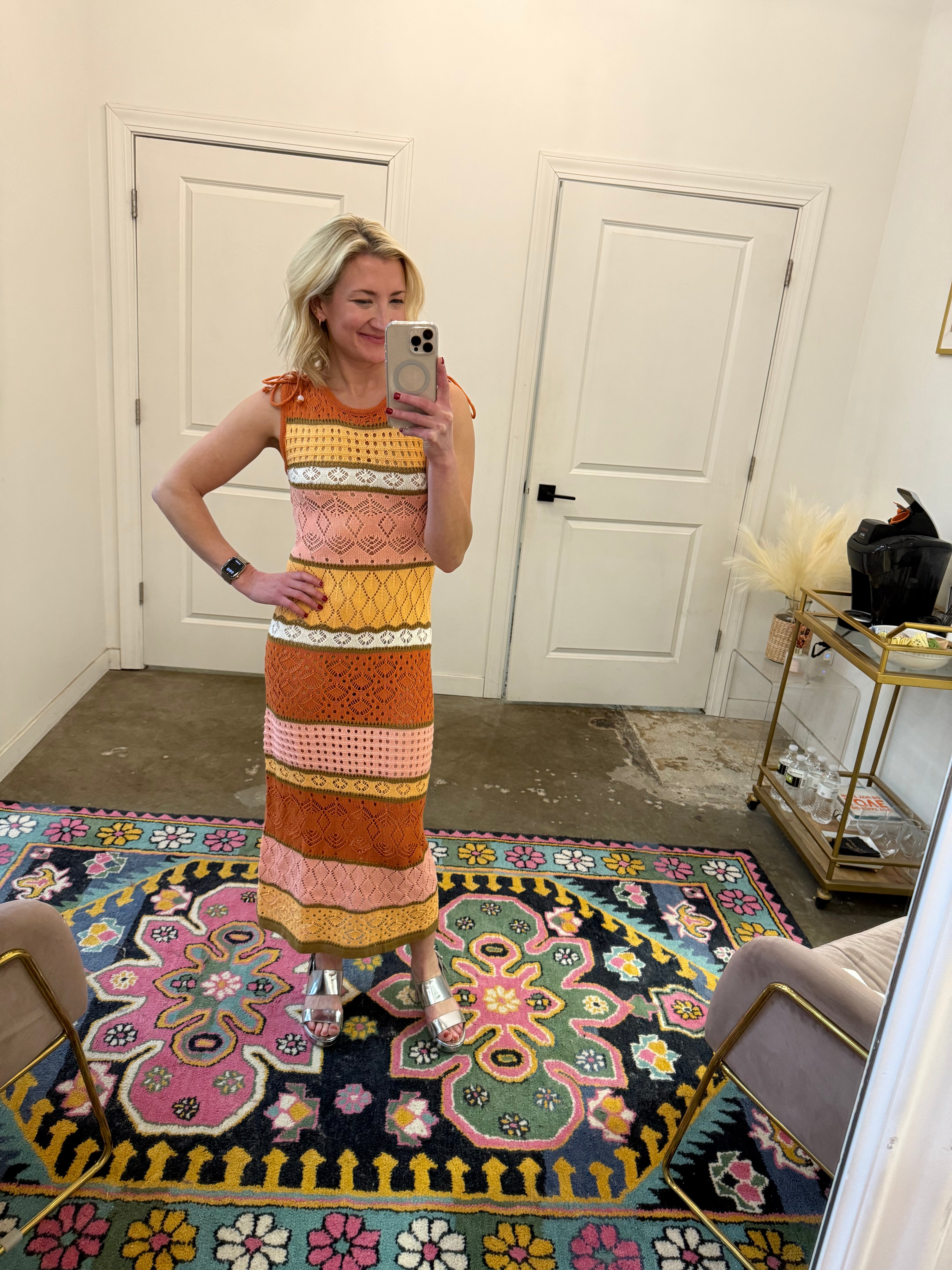 This cute knit dress can be worn as a cover-up or if a slip is added, can be worn as a dress!