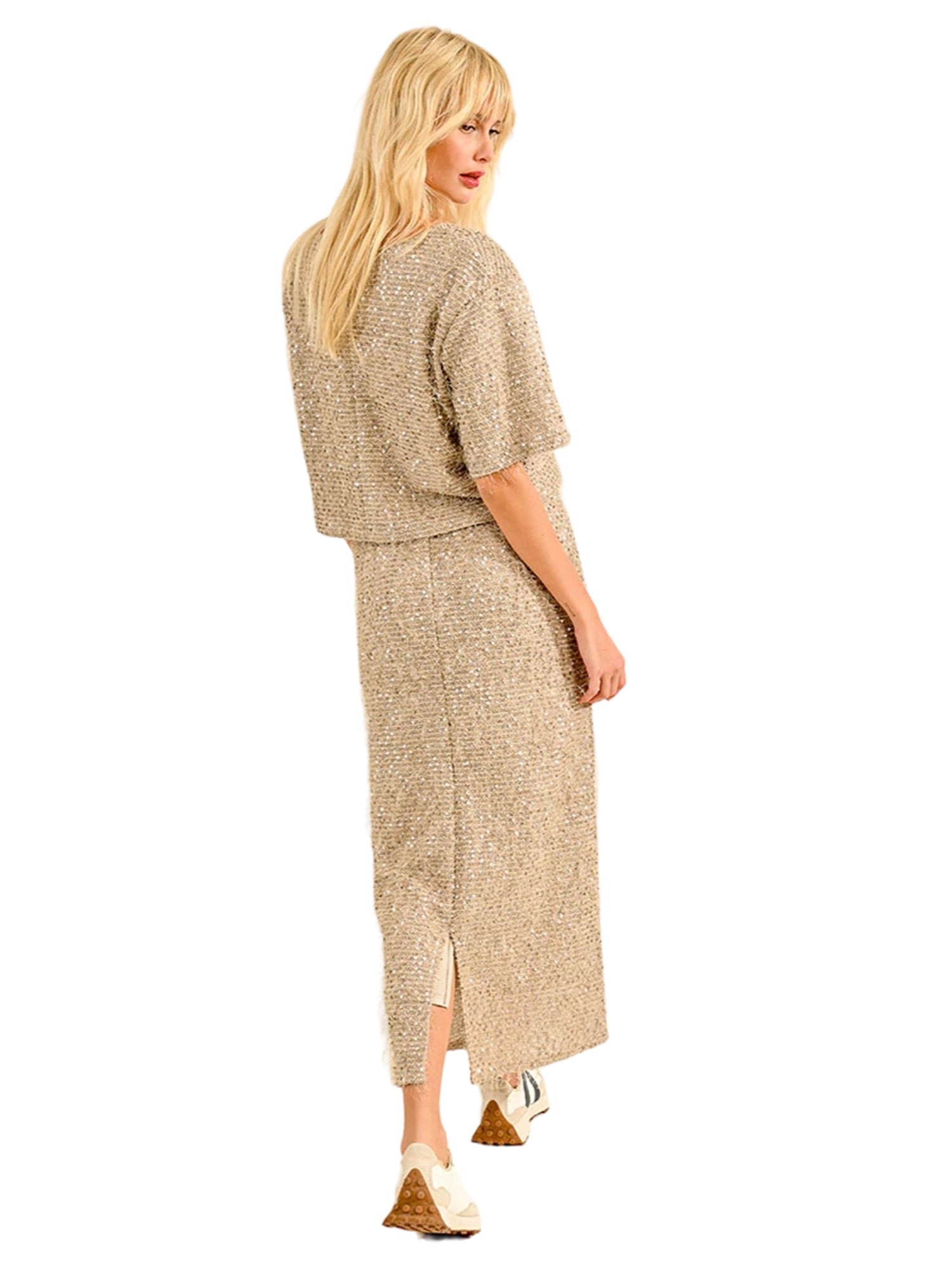 Look: The Molly Bracken Young Ladies Knitted Skirt offers timeless elegance with a modern twist. Crafted from soft, stretch-knit fabric, it provides a flattering fit and supreme comfort. The classic design features subtle detailing, making it versatile for any occasion, from casual outings to formal events. Elevate your wardrobe with this chic, must-have piece.