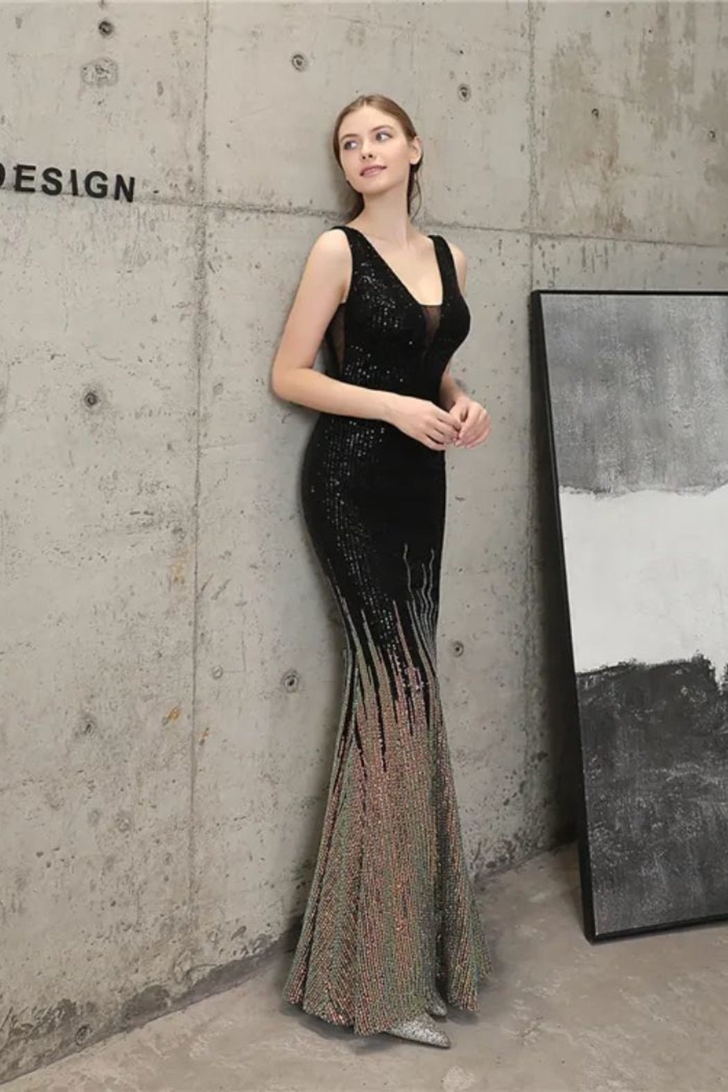 New Year Gala Dress Glittering Evening Gown Formal Dresses Black & Gold Sequin Dress Evening Dress