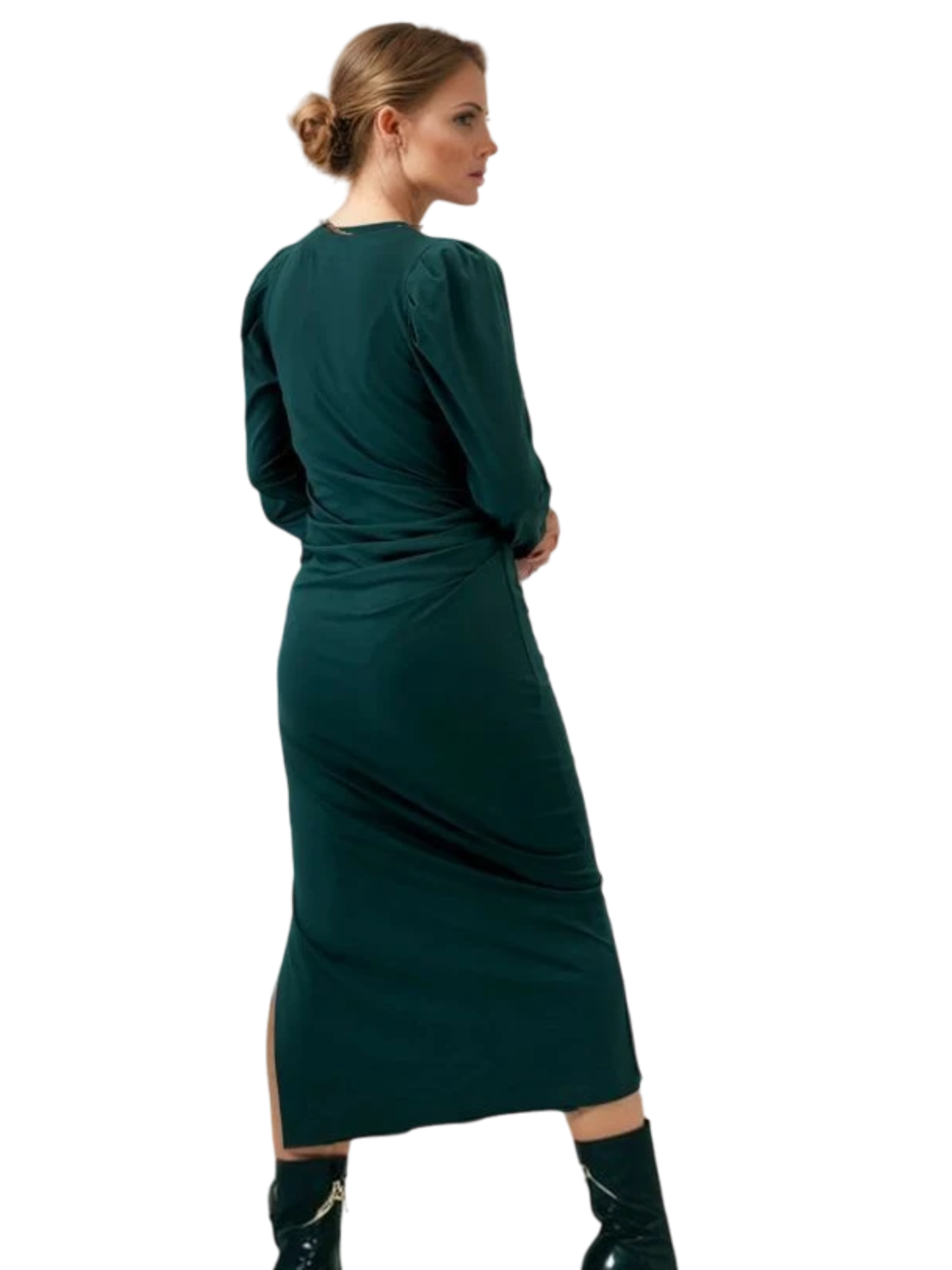 Description - The Noen Slit-Waist Dress blends elegance and edge with its flattering side slit and waist-defining ruching. Featuring long sleeves and a modern high neckline, it’s the perfect choice for both day and evening looks. Crafted from a soft, comfortable fabric, this versatile dress is designed to complement every figure, making it a must-have staple for any wardrobe.