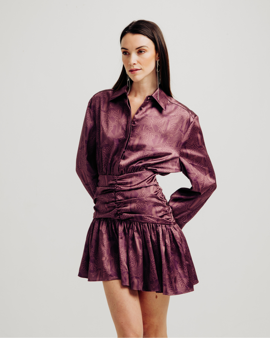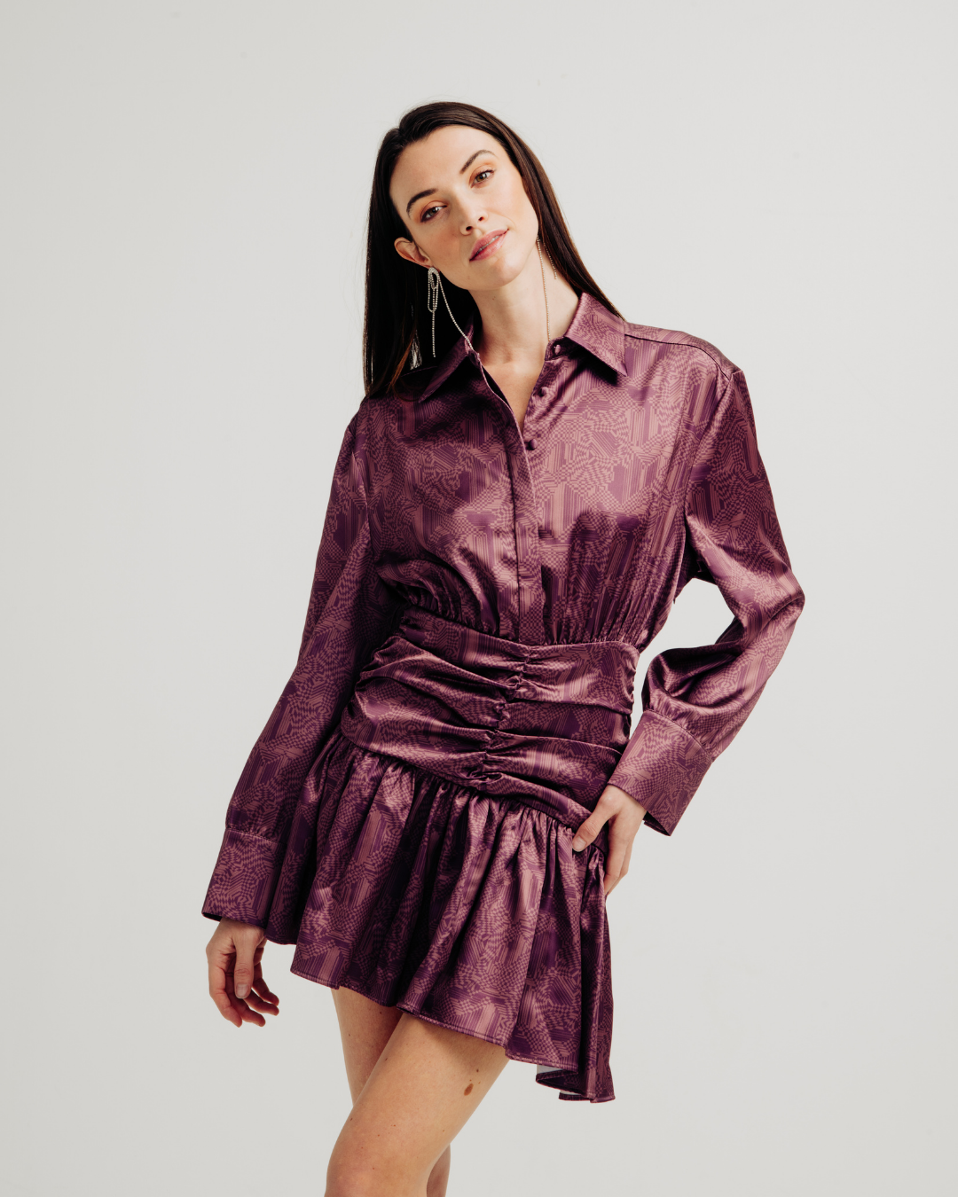 Olive Dress, a fiercely sexy Asymmetric Mini creation that embraces boldness with its edgy design and alluring Front Gathers. This dress is a statement of individuality, defying norms with its asymmetry and creating a dynamic silhouette that captivates. Embodying the unmistakable Torn by Ronny Kobo aesthetic