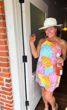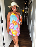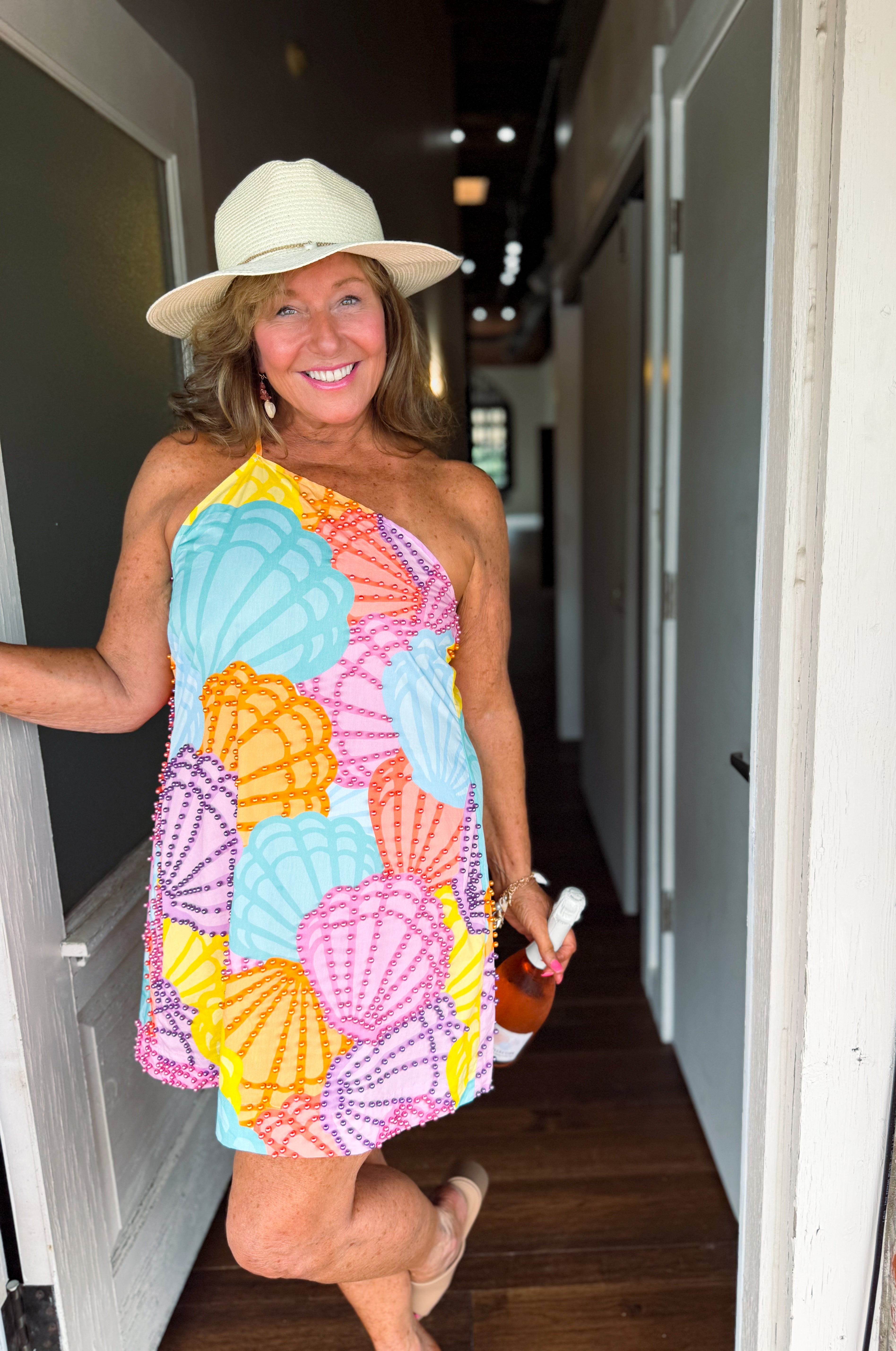Mermaid vibes, but make it glam! This vibrant swing dress features an allover pastel seashell print with stunning bead embellishments for that signature Queen of Sparkles shimmer. Lightweight, flirty, and full of beachy charm, it’s perfect for vacays, brunches, or any moment that needs a little extra sparkle.