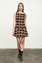 The perfect Plaid Drop Mini is everything you need this fall! This brown mini features a high neck. Pair with a heel, bootie, or knee high boot and you are set.