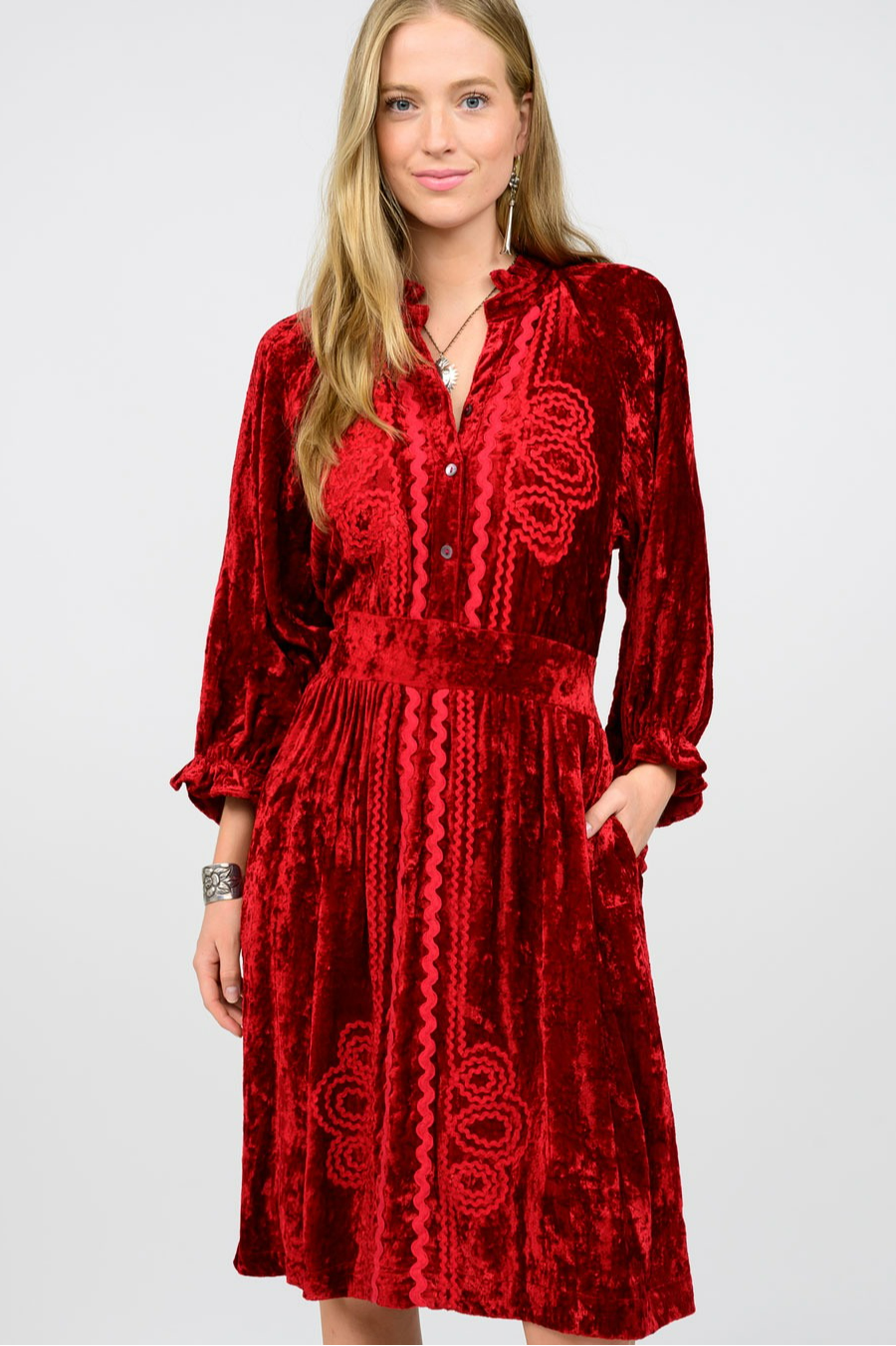 This darling velvet midi is perfect for any event this holiday season! It's modest cut and flirty fabric make for the perfect pairing, so you can pull it out for an office party or a romantic night on the town. Dress it up with some heels and sparky jewelry, or make it casual with some boots and a jean jacket.