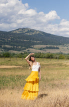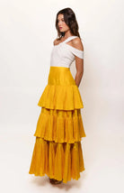 - asymmetrical shoulder tiered maxi dress
