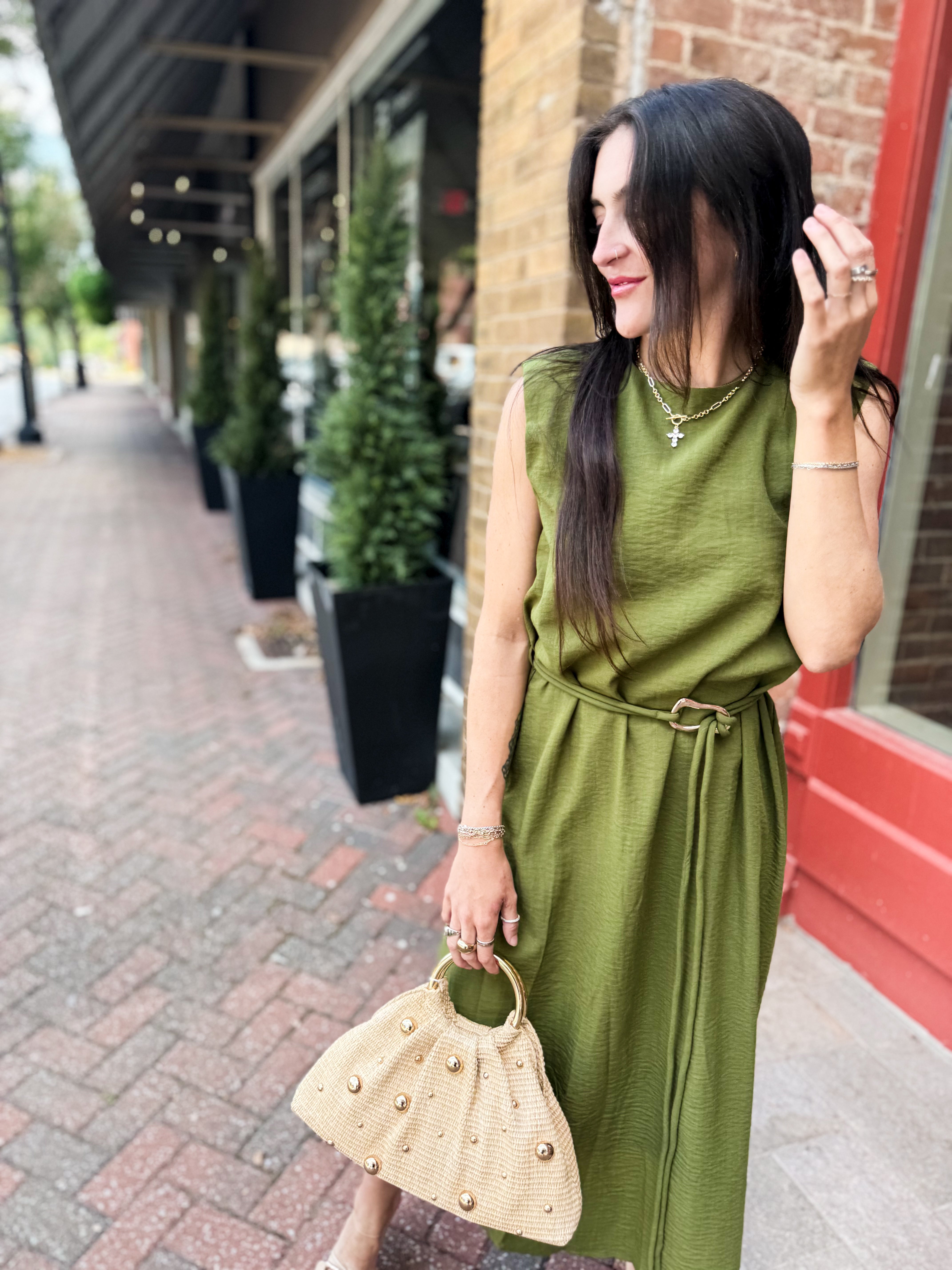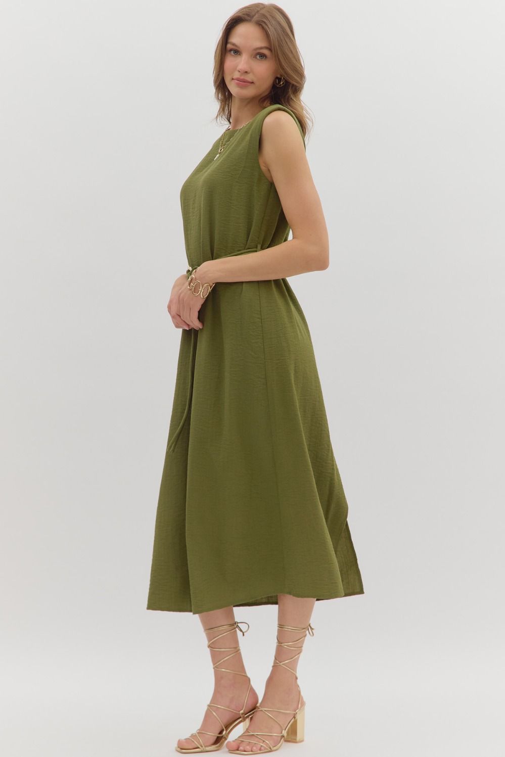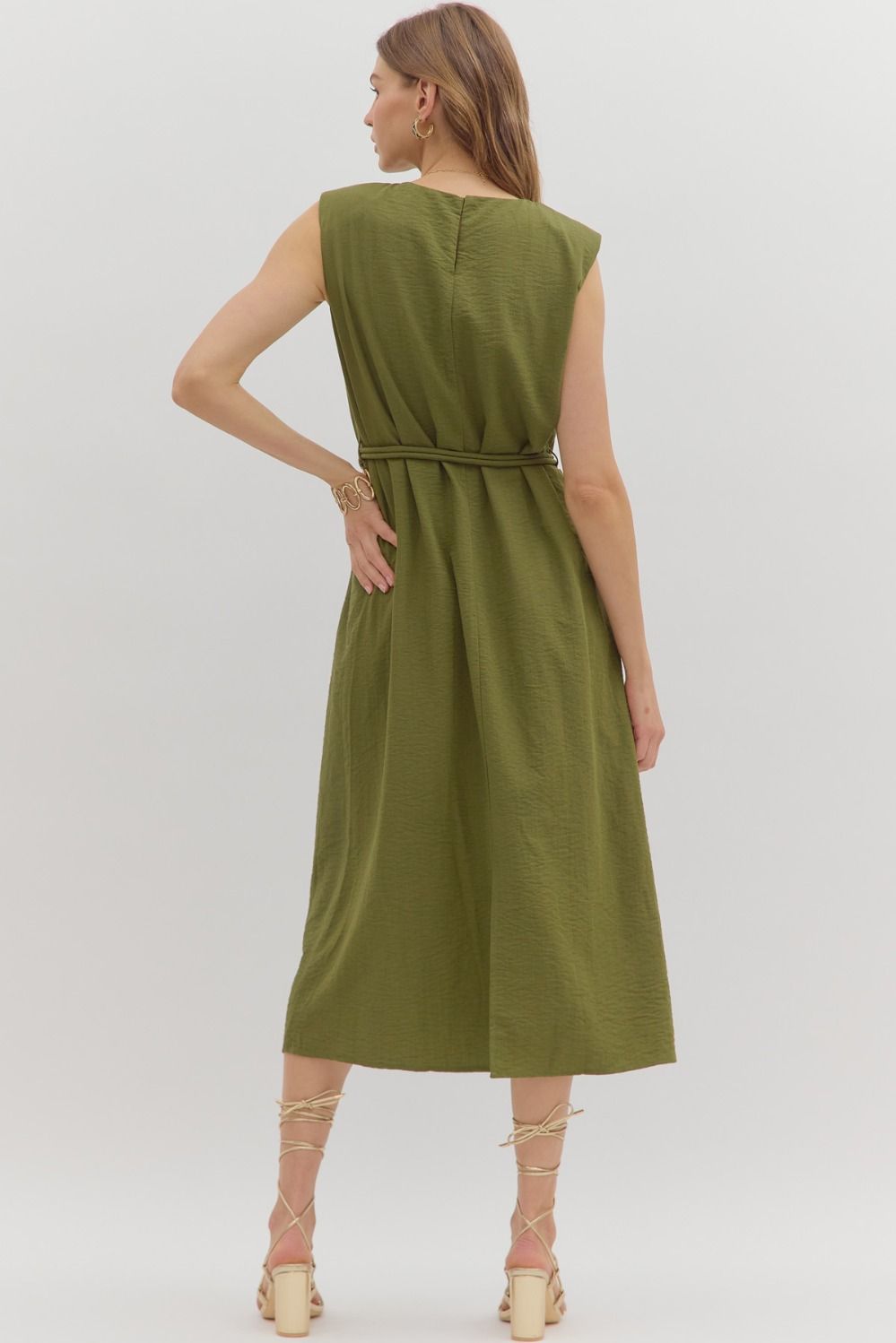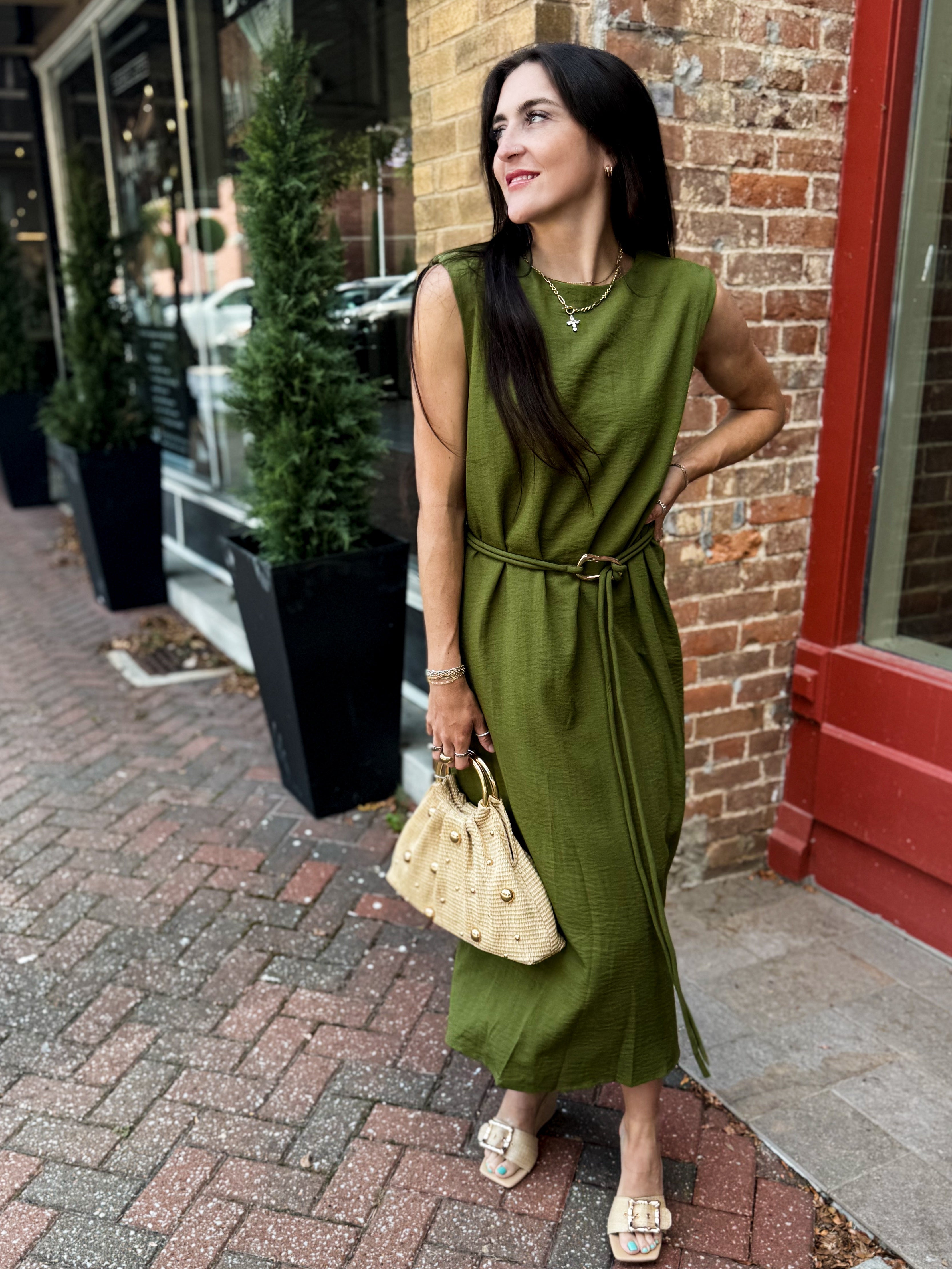 Sage Belted Midi Dress