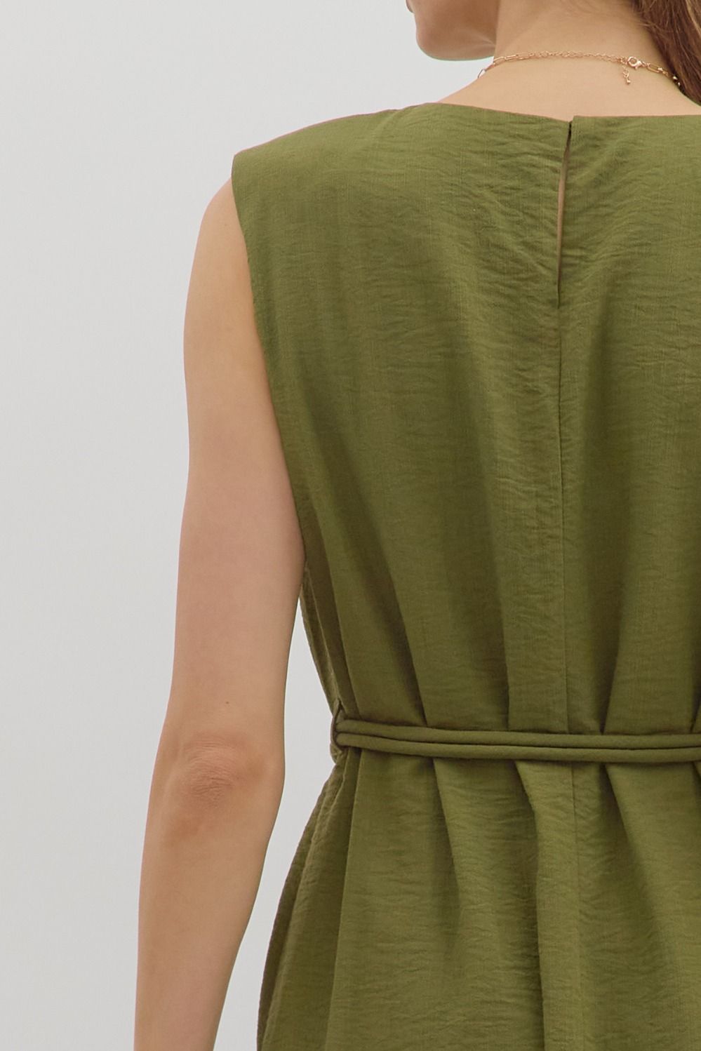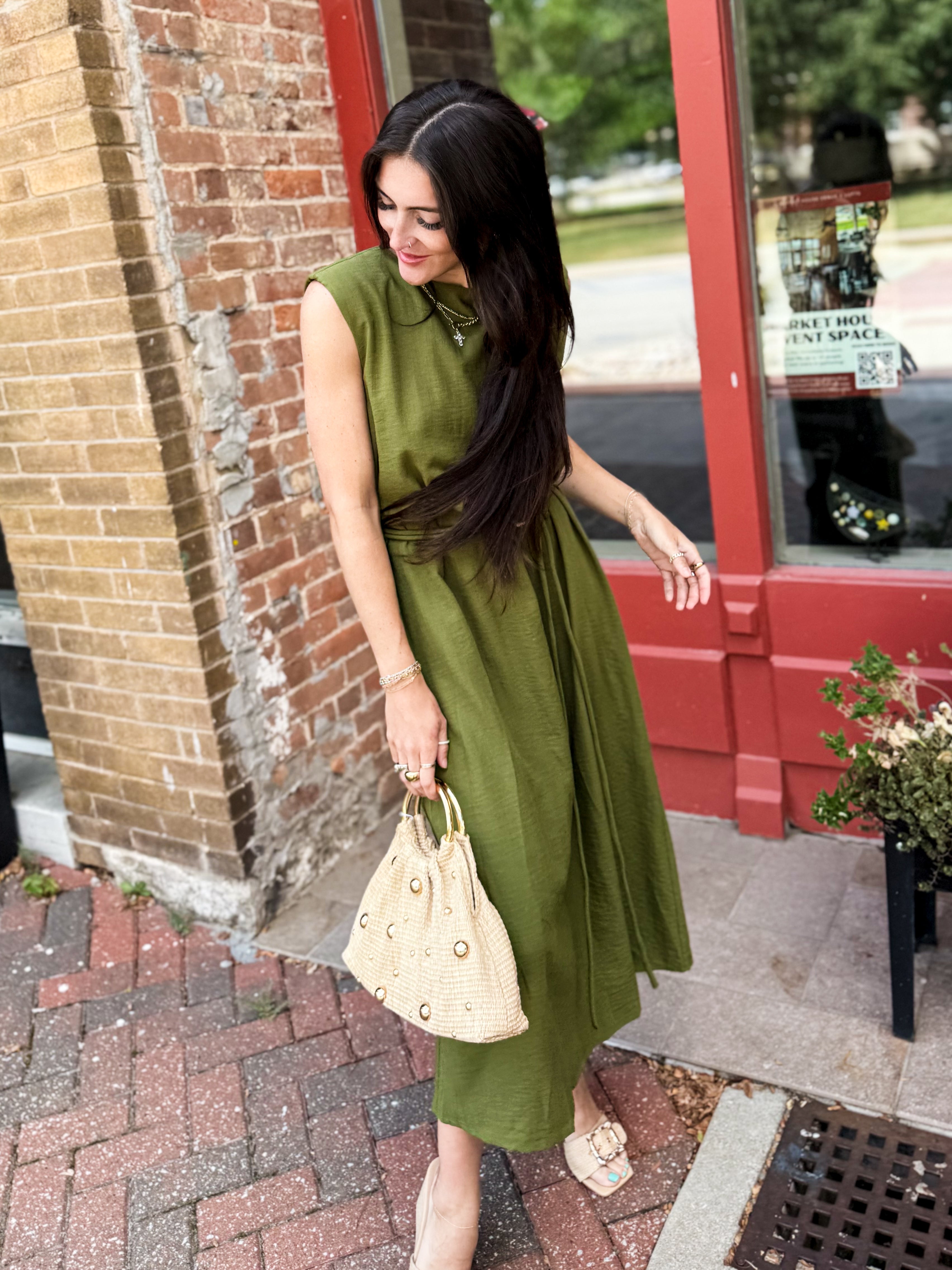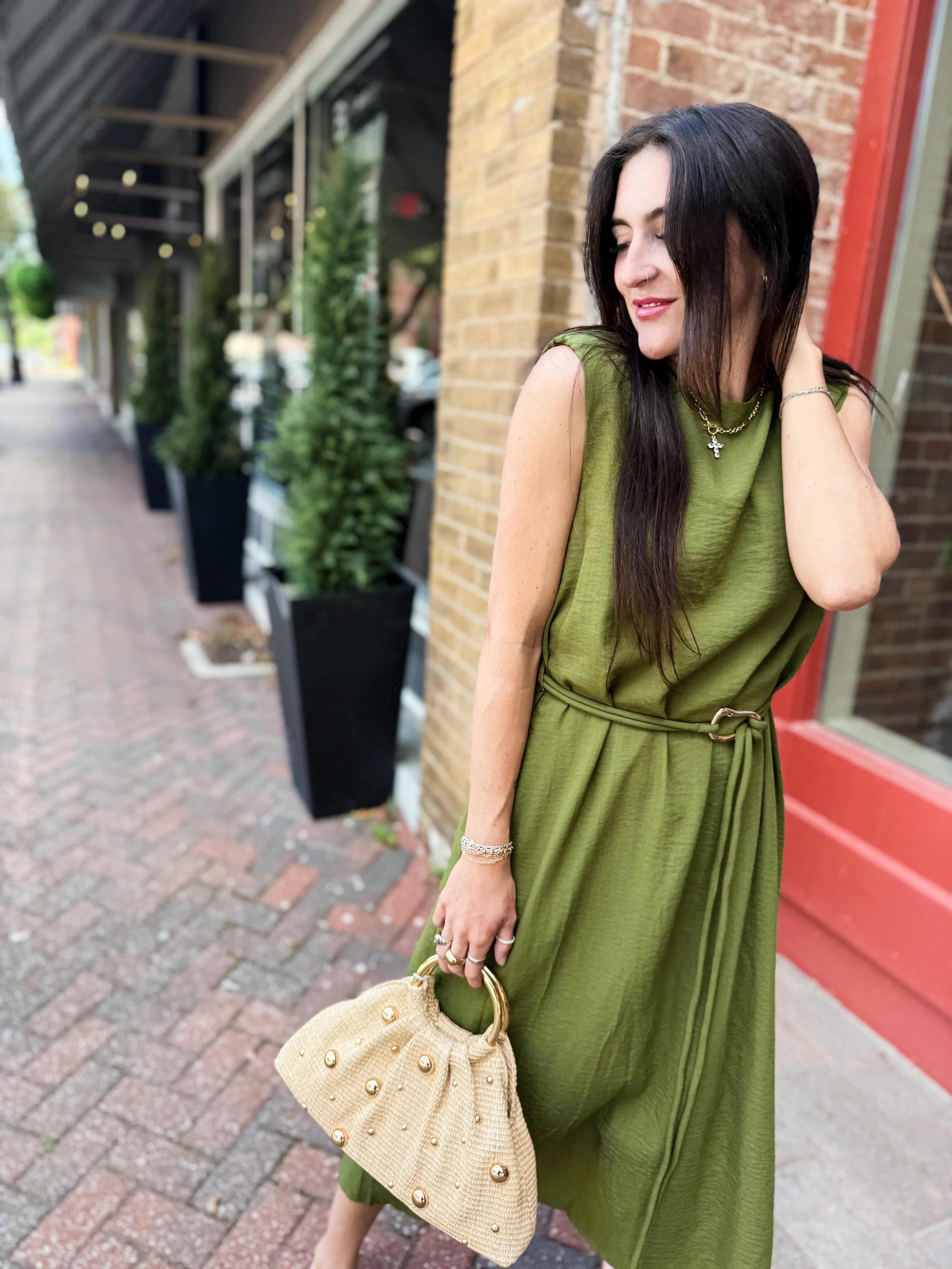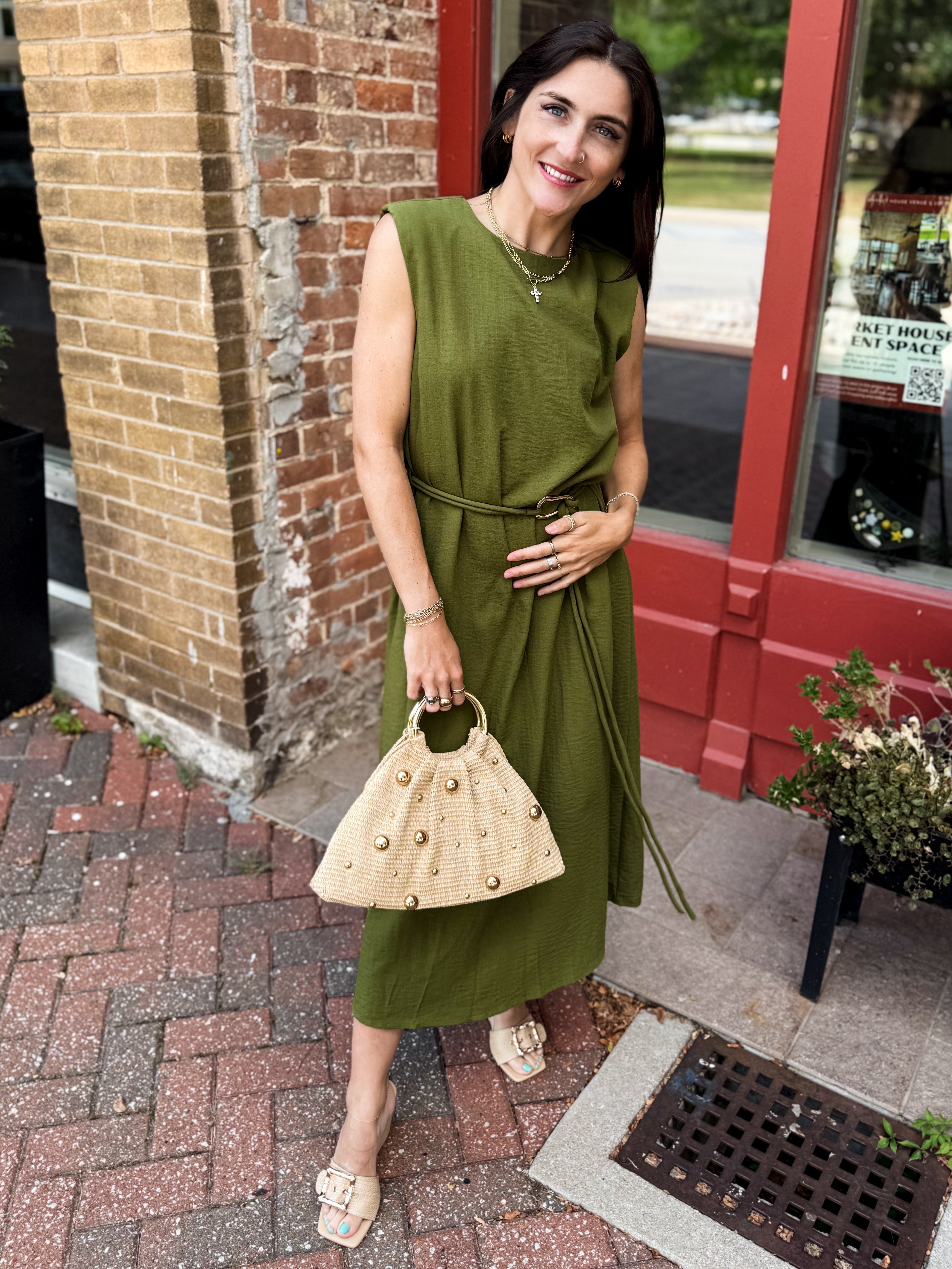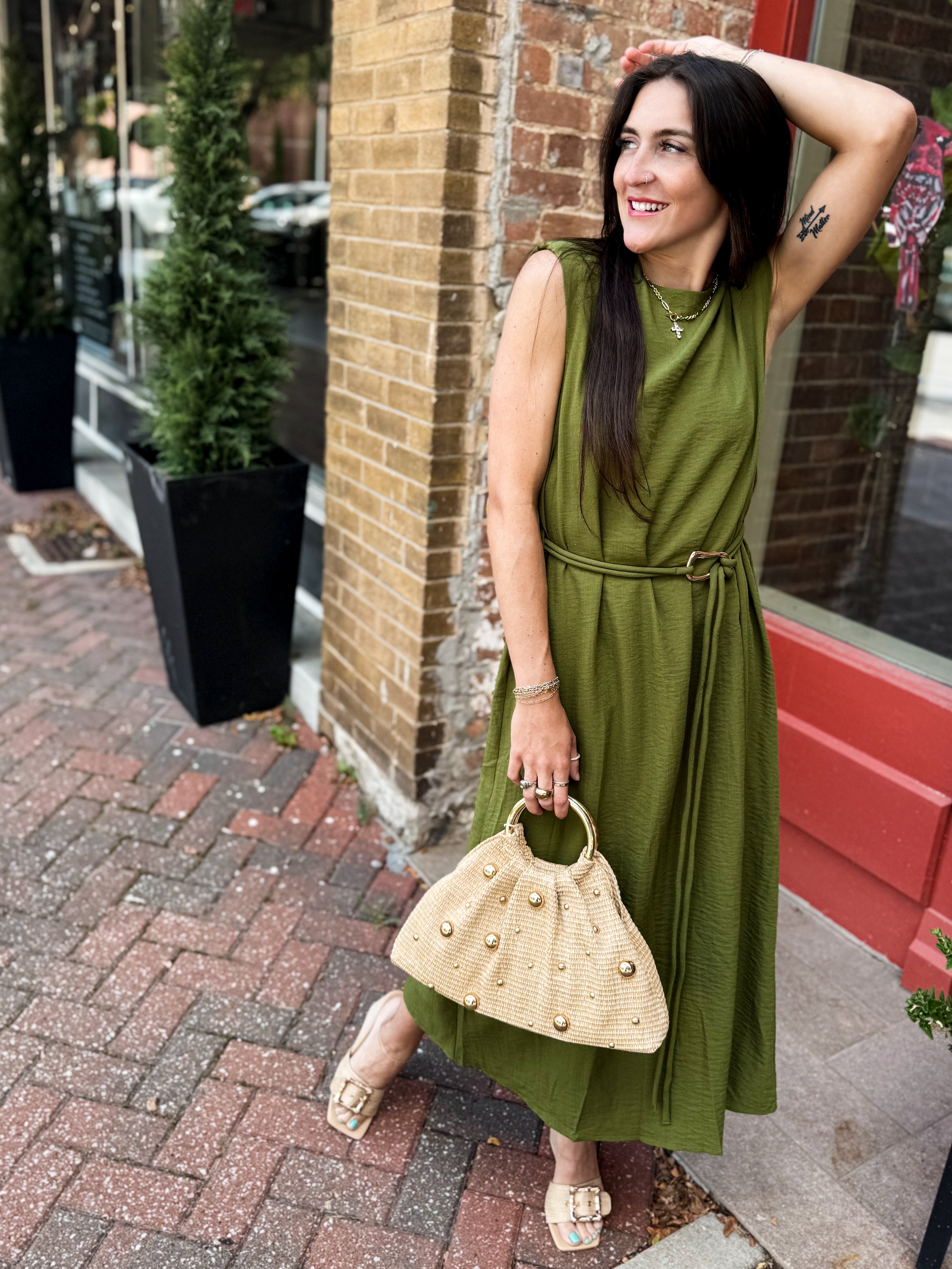 Sage Belted Midi Dress