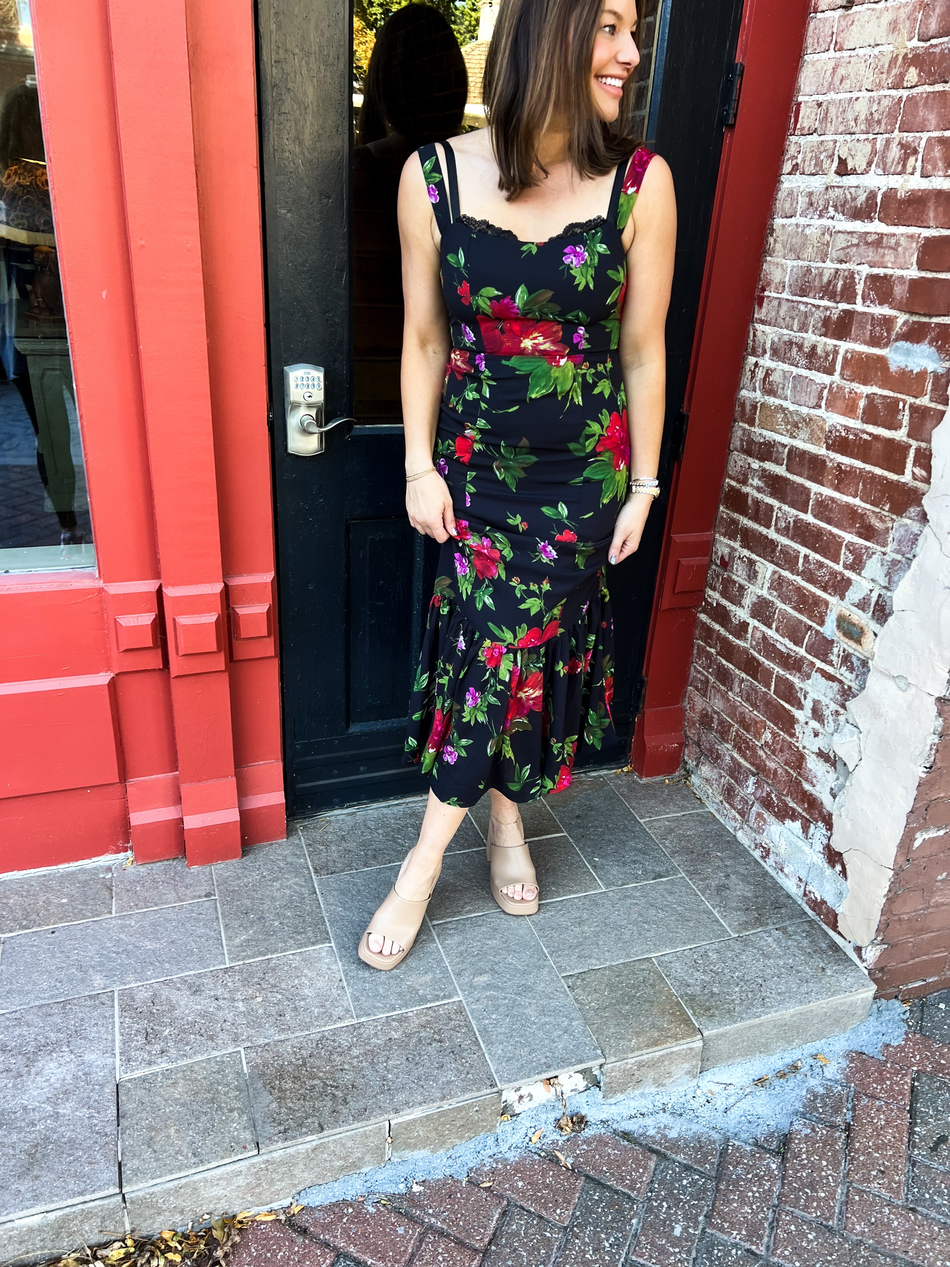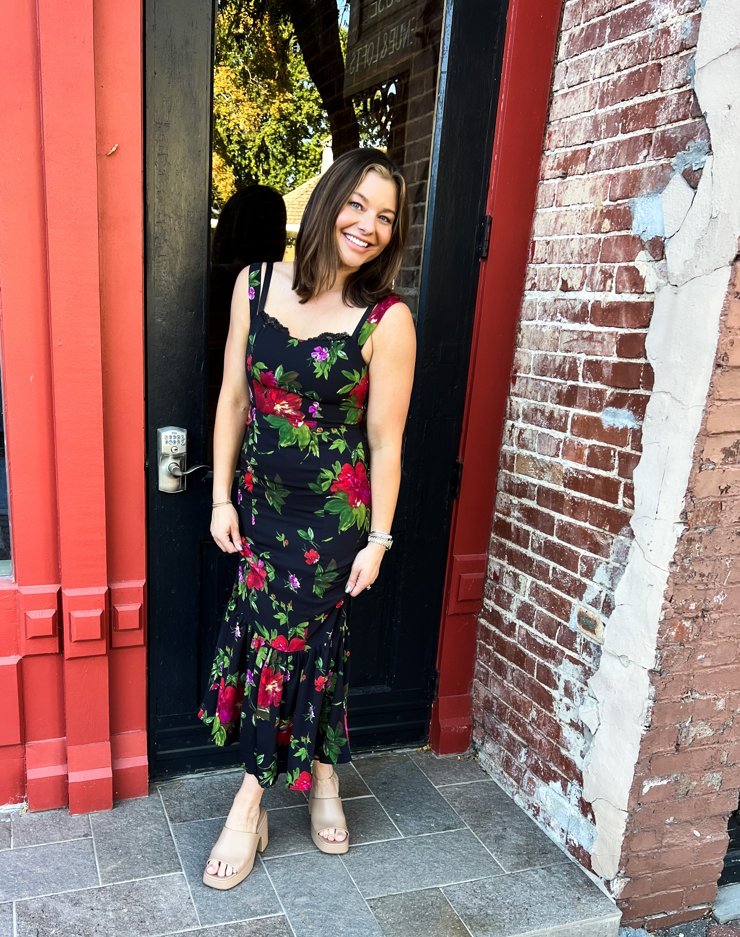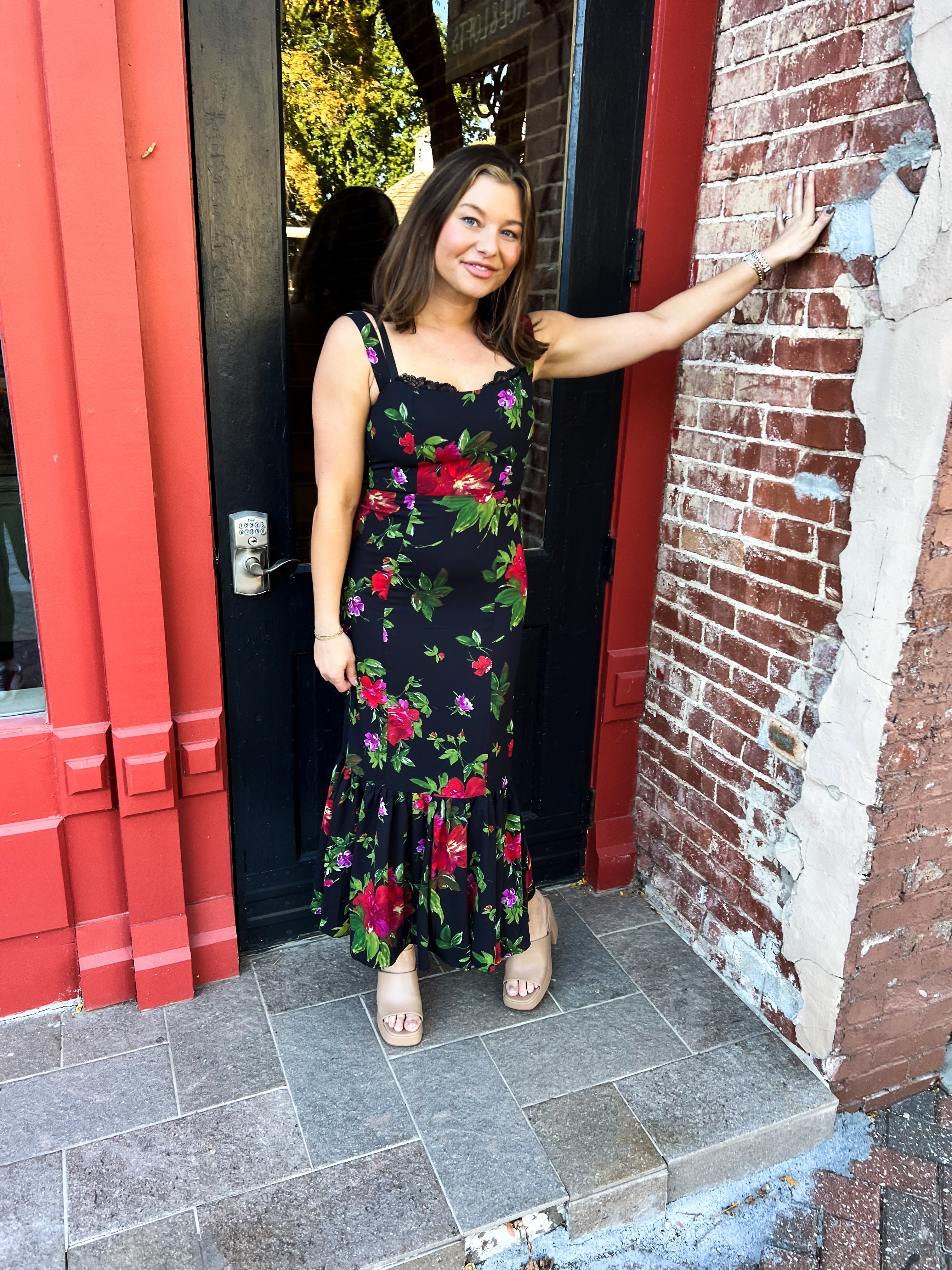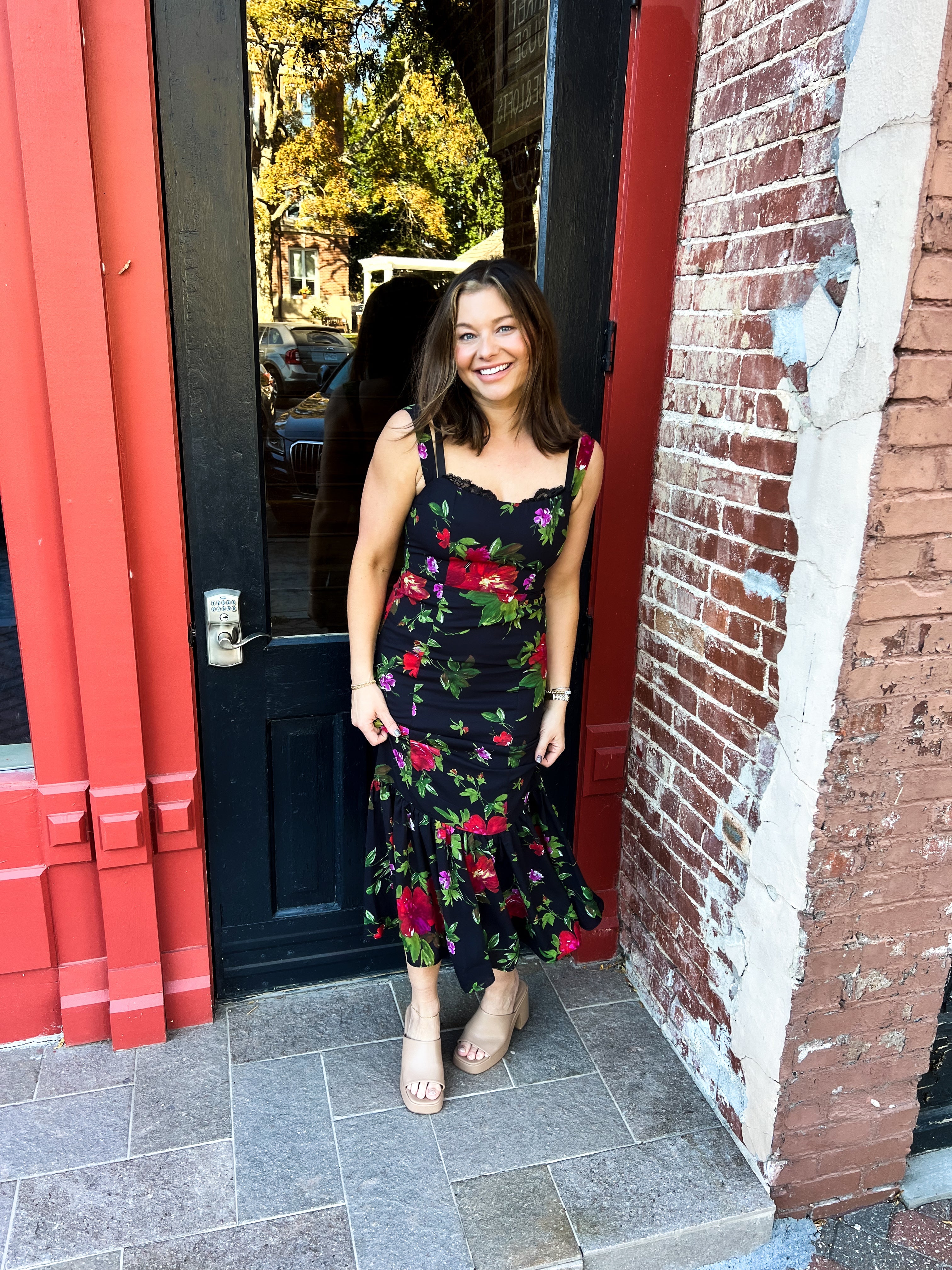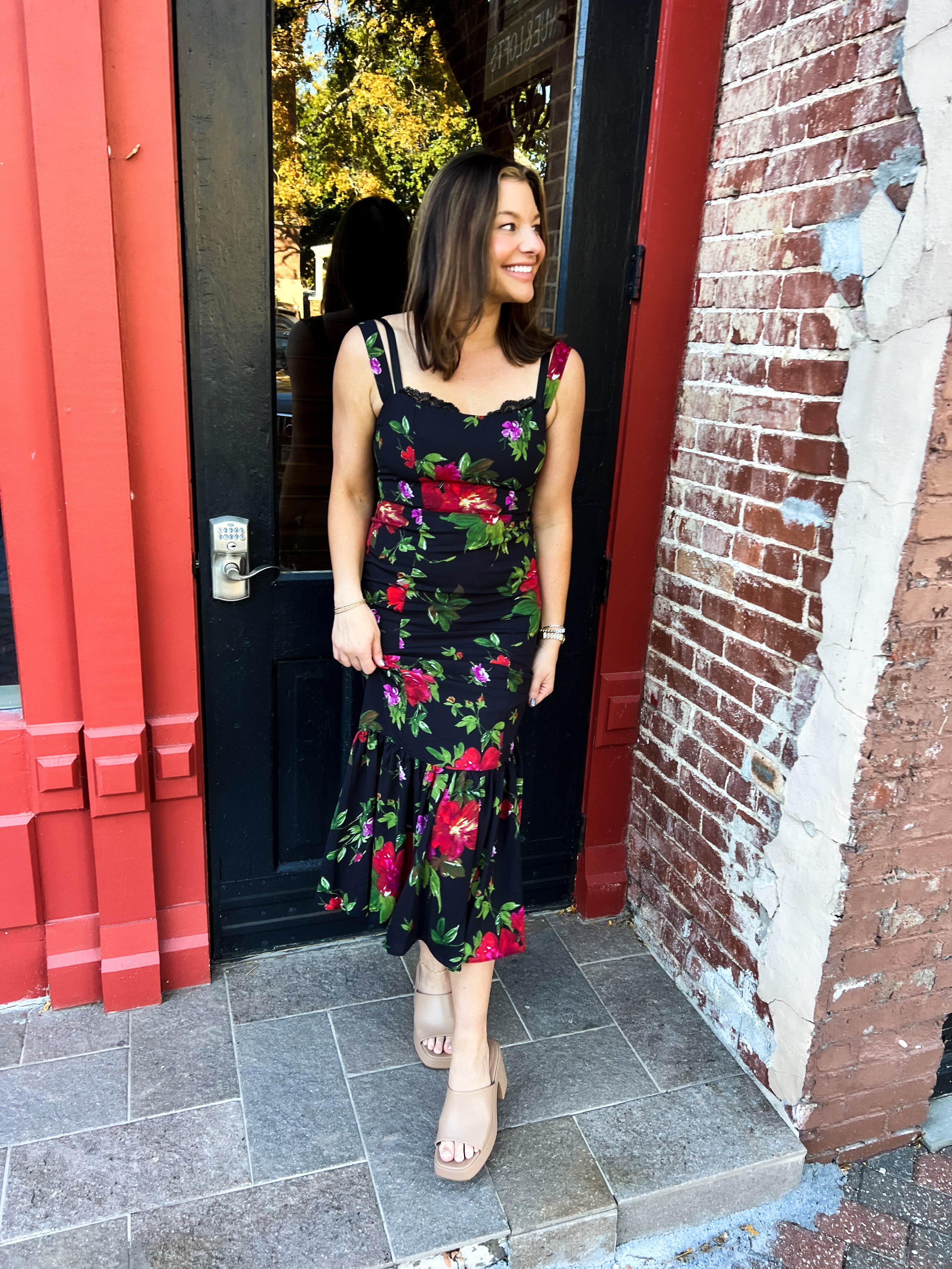 Be the talk of the town in our Sweet Talk Lace Bra Mermaid Dress! This floral print dress features a faux lace bra detail, adjustable shoulder straps, and a flirty mermaid silhouette. The smocked back panel and hidden zipper closure ensure a perfect fit, while the ruffled hem adds a playful touch. Say yes to this dress and slay the mermaid look!