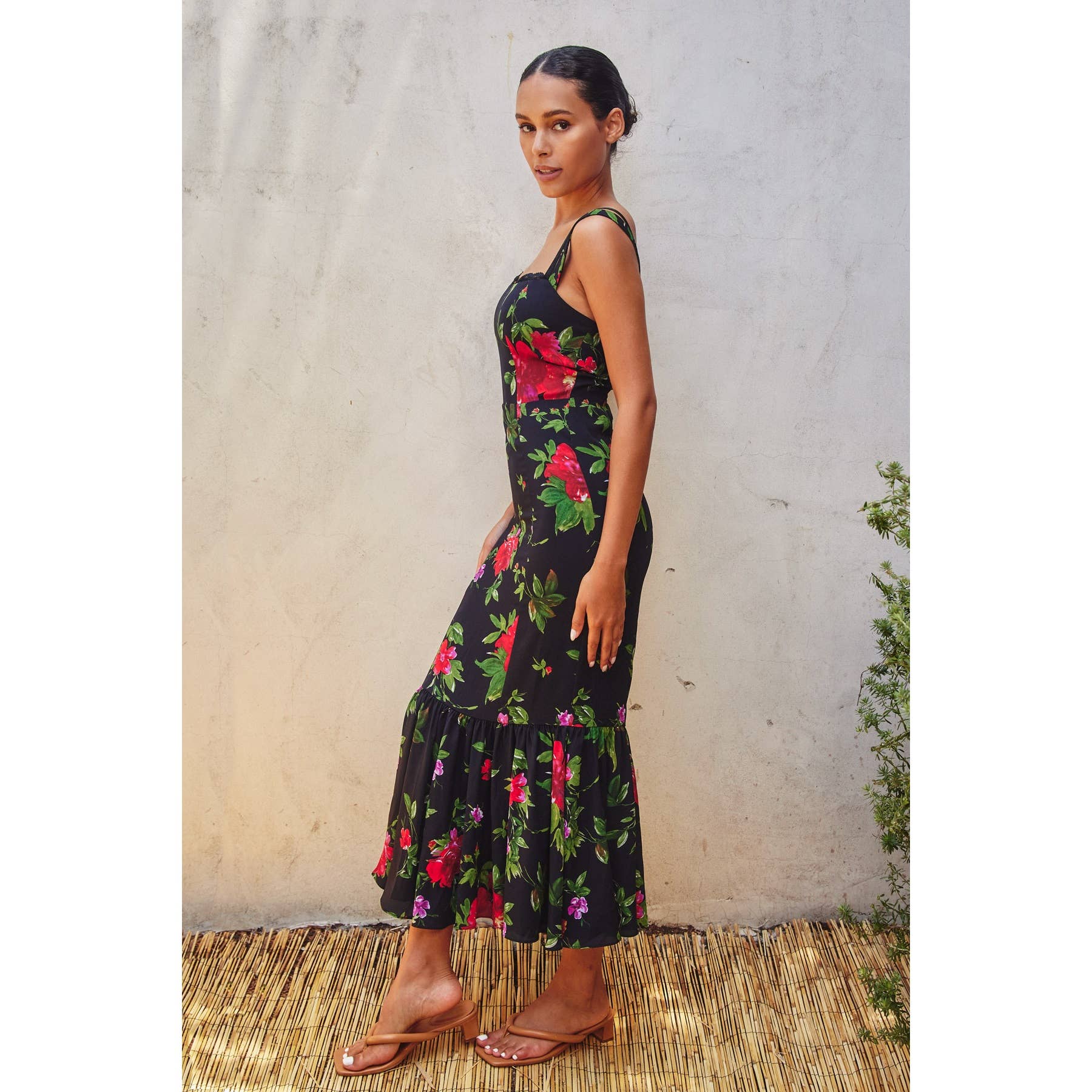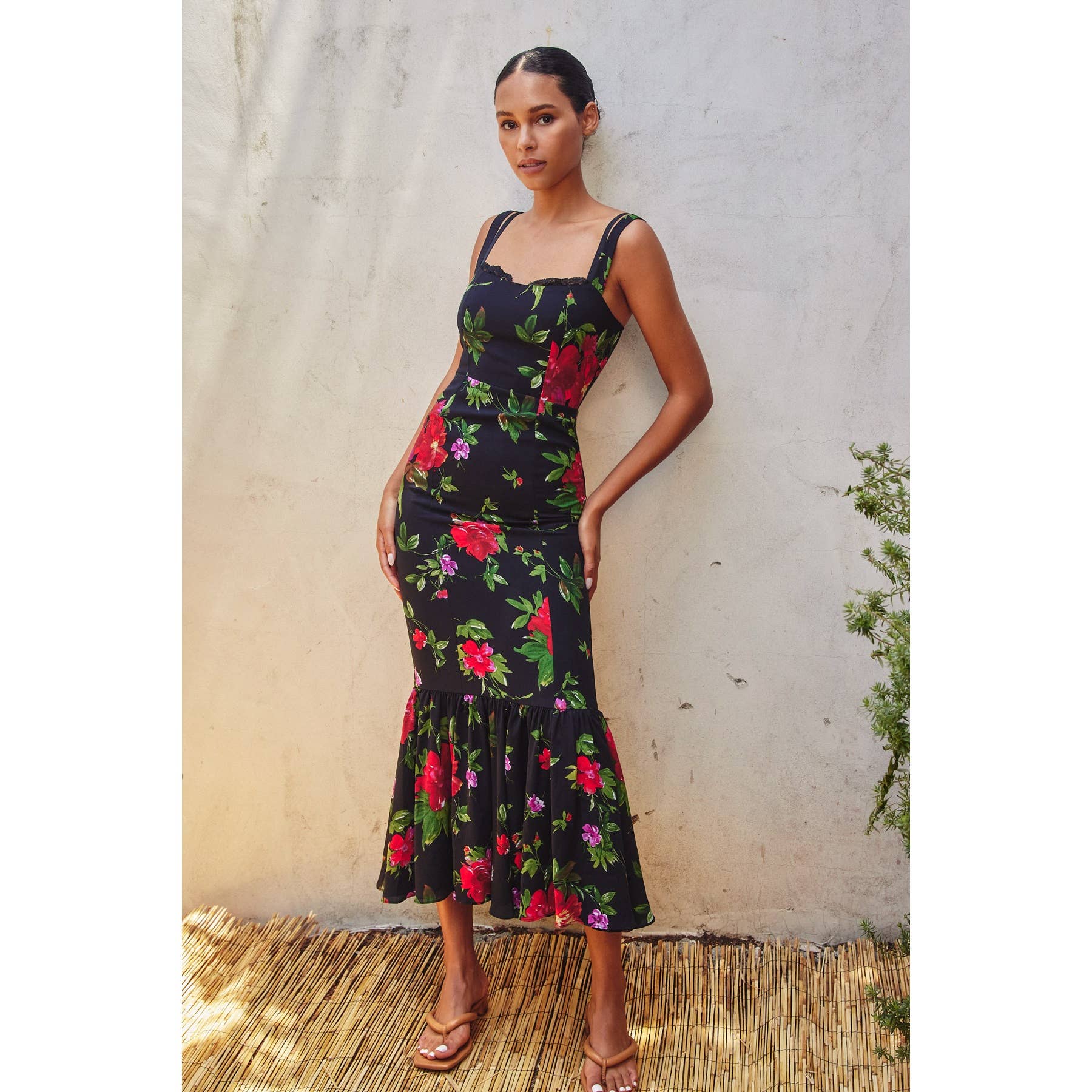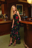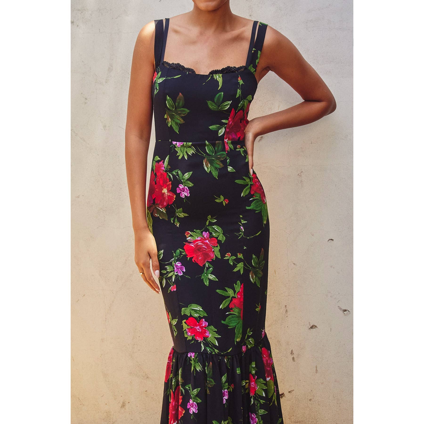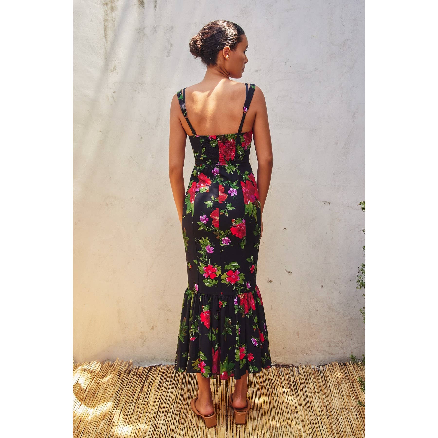 Be the talk of the town in our Sweet Talk Lace Bra Mermaid Dress! This floral print dress features a faux lace bra detail, adjustable shoulder straps, and a flirty mermaid silhouette. The smocked back panel and hidden zipper closure ensure a perfect fit, while the ruffled hem adds a playful touch. Say yes to this dress and slay the mermaid look!