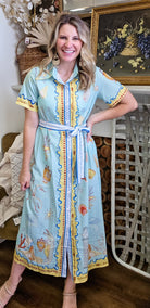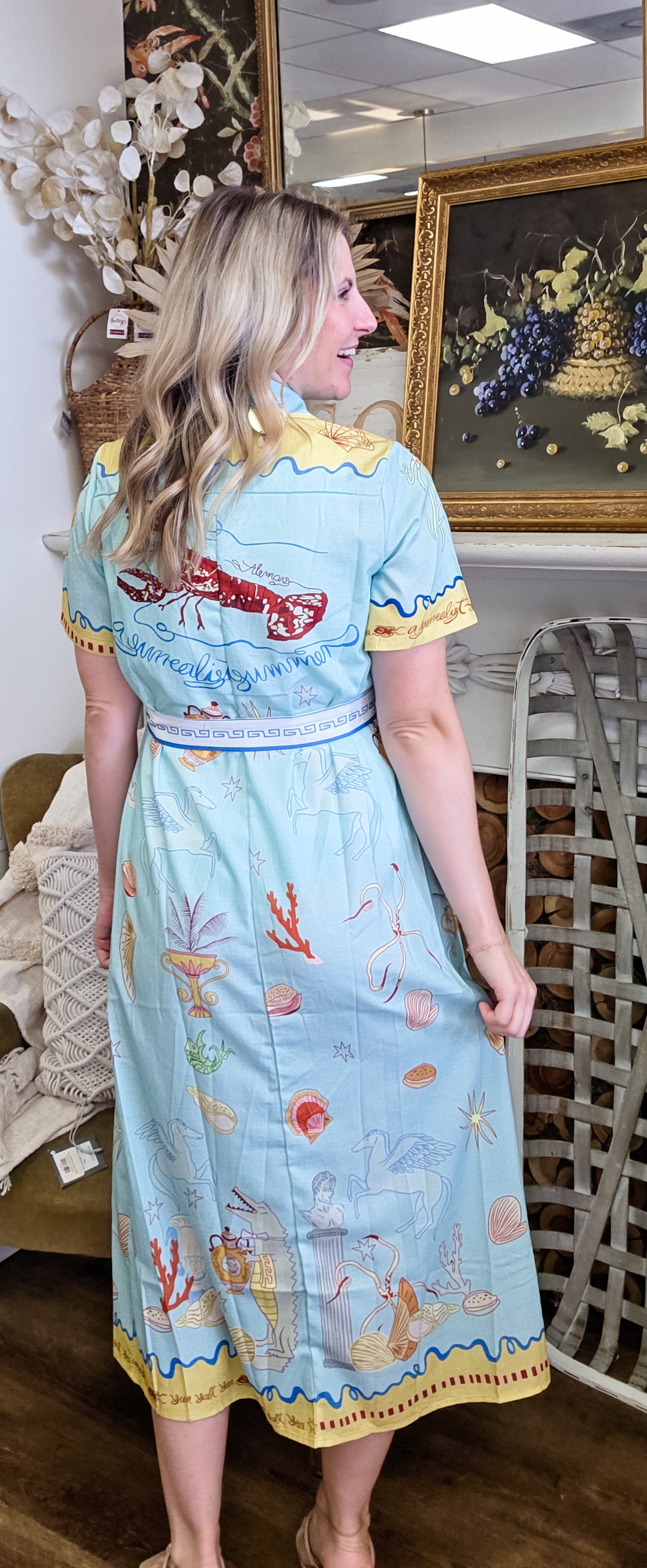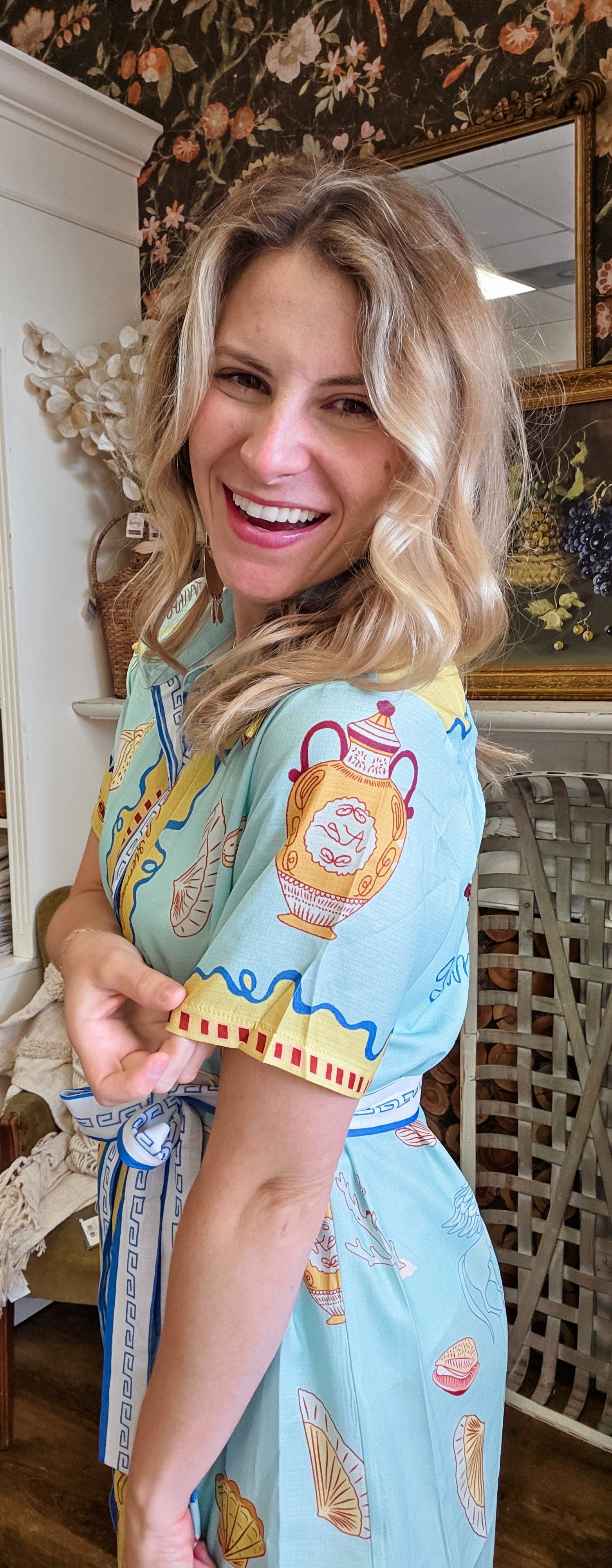Take Me to Greece Midi Button Up Tie Dress (Small to 2XL)