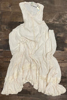 The WC Layering Dress by Jaded Gypsy: a 100% cotton dress with a boho fringe, high-low hem, 2 tier hem, and v-neck. Perfect for adding a touch of fun and playfulness to any outfit. (Only available in quirky!)