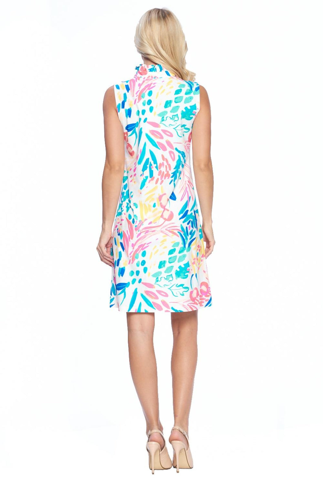 White Ruffle Neck Dress