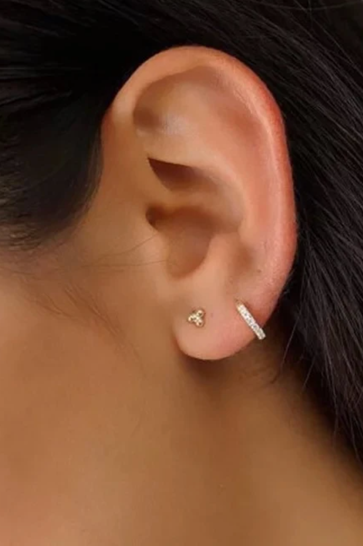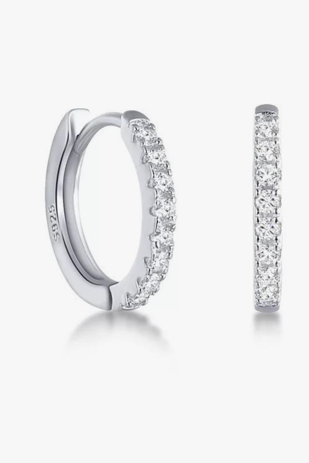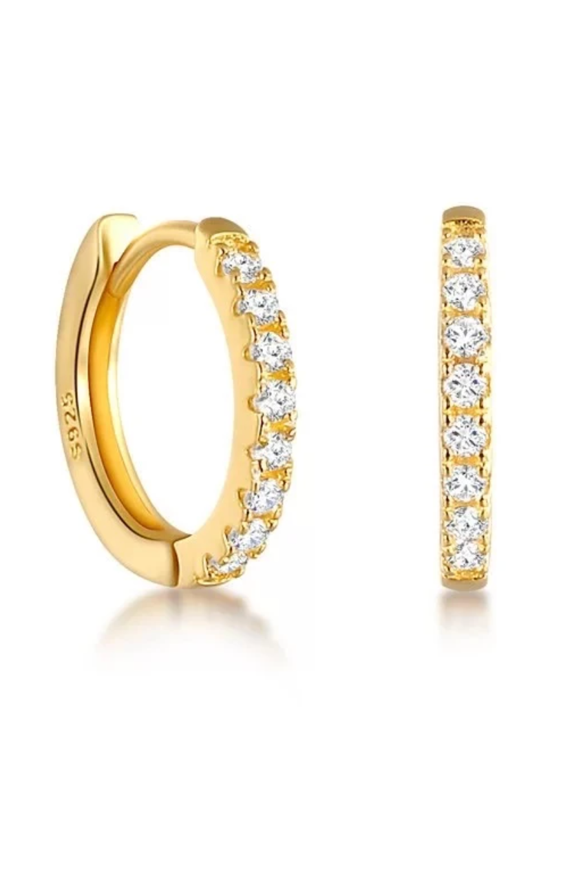 These huggie hoop earrings embrace the ear with a little sparkle. Hypoallergenic. Tarnish resistant.