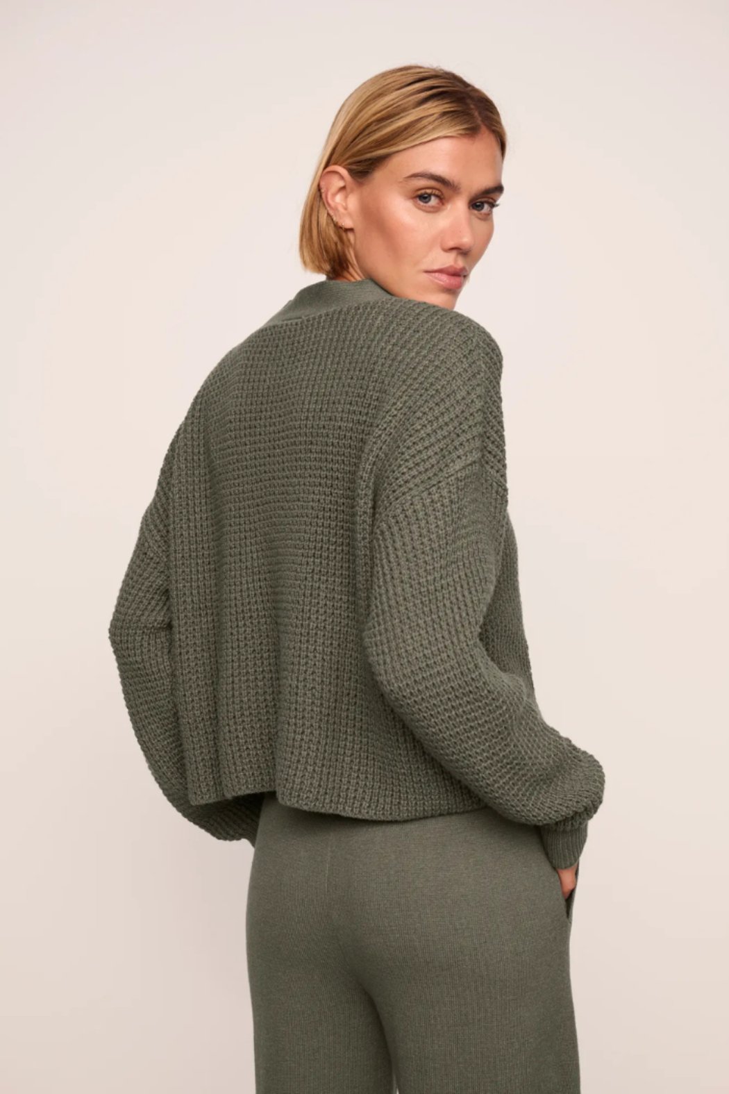 Let’s get cozy. Made from recycled cotton, acrylic, and recycled polyester, this cropped chunky waffle cardigan is a dream to wear and layer with its relaxed fit and button closure. Pair with the matching sweater pant and cropped tank for an all day outfit, or gift the full set to your favorite person who loves softness (and the planet) just as much as you. Fit & Care • 57% Recycled Cotton, 28% Acrylic, 15% Recycled Polyester • Cropped length waffle stitch sweater cardigan • Relaxed fit • Button closure • Machine wash cold; tumble dry low • Imported