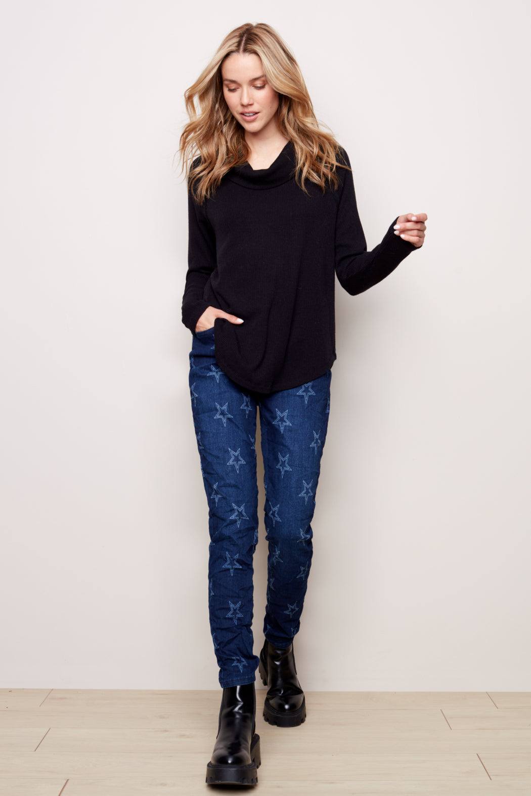 There are so many reasons why we love this cowl neck top for women: The stretchy, soft blend and ribbed texture. The light feel and tunic-length. The relaxed fit, rounded hem, and cozy cowl neck. This women’s long-sleeved top gets a thumbs up all around.