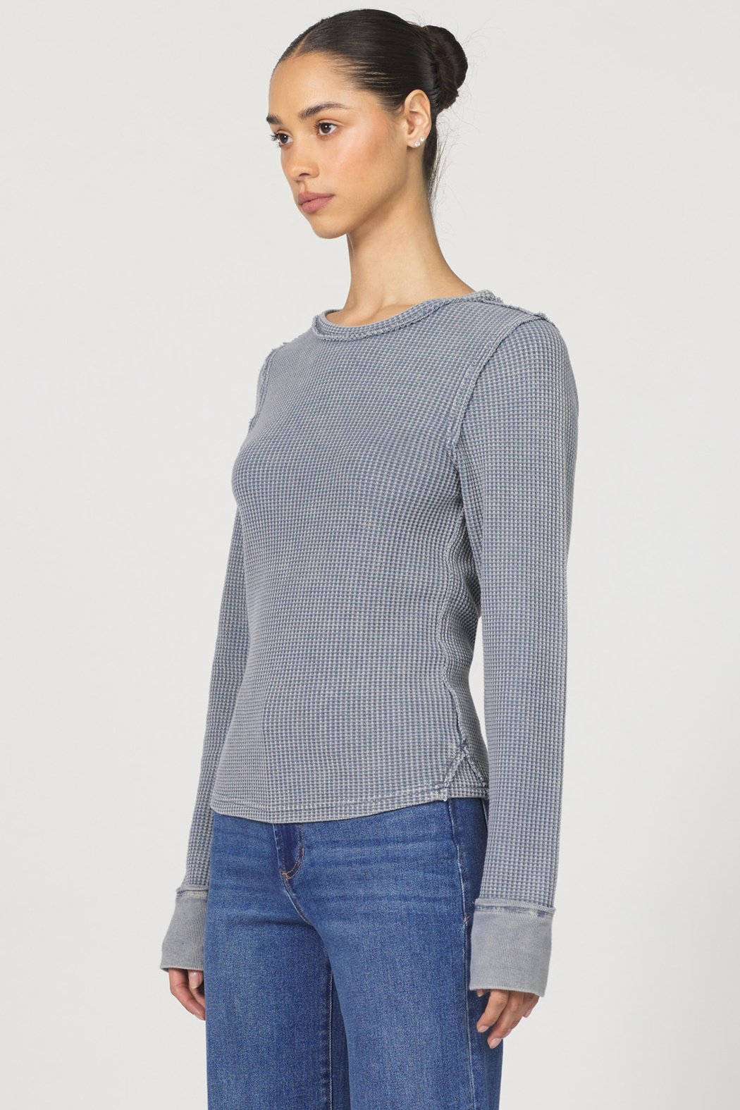 Get the perfect blend of sophistication and comfort with the Ania thermal top. This long sleeve crew neck top creates a slim fitting silhouette effortlessly. Its waffle texture adds a subtle touch of modernity, ideal for layering or wearing solo, this top is your go-to solution for a versatile outfit that exudes understated lifestyle wear.