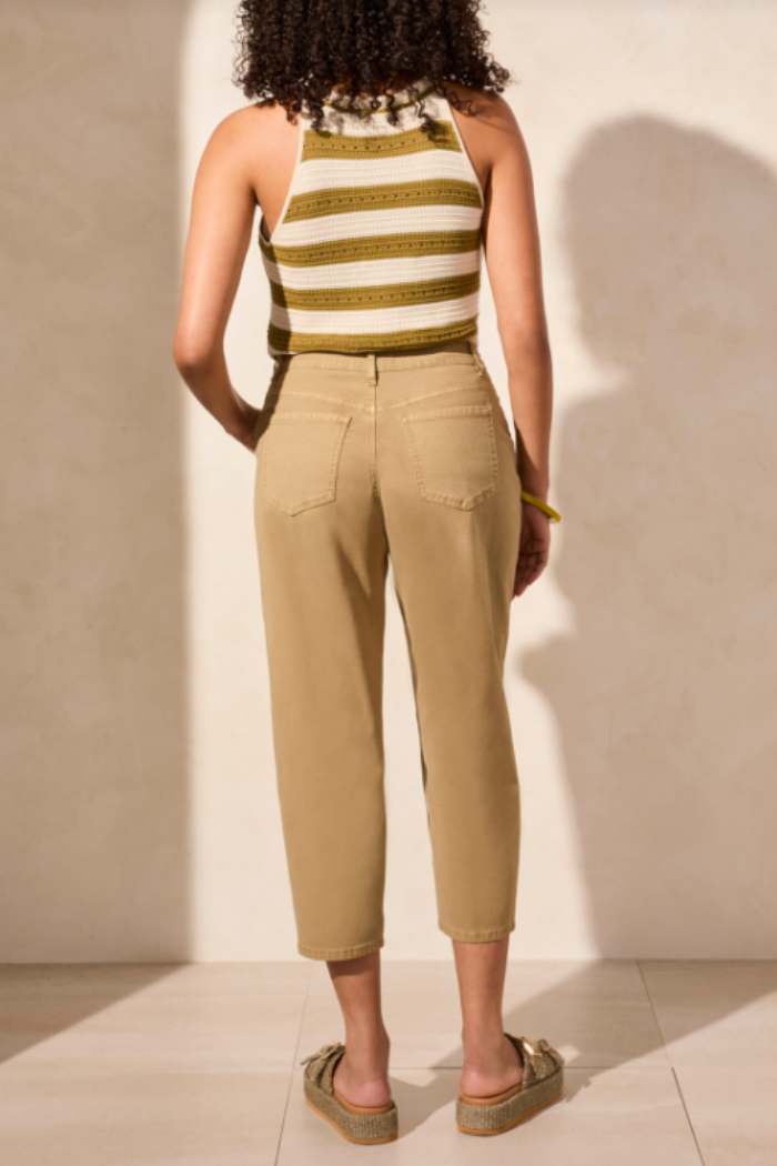 Wanting to try the trending barrel jean? Well this is a unique color that will go with lots. Pair back with the cute tribal sweater tank also available on our website!