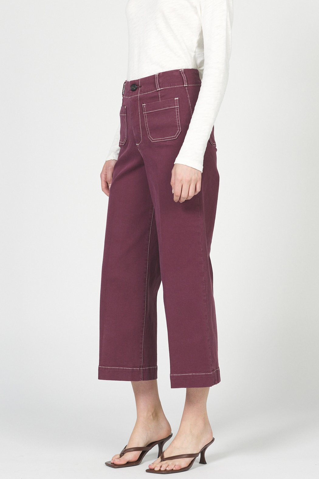 A cropped high-rise jean with a wide, cropped leg and visible front patch pockets for a modern utility feel. The Audrey High Rise Crop Jean is cut from denim with contrast topstitching and a relaxed silhouette that hits above the ankle. This style is offered by Dear John and works as an easygoing, everyday jean that pairs with tees or lightweight sweaters.