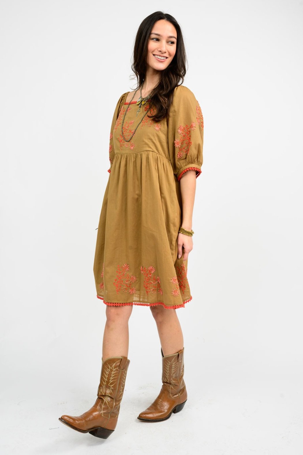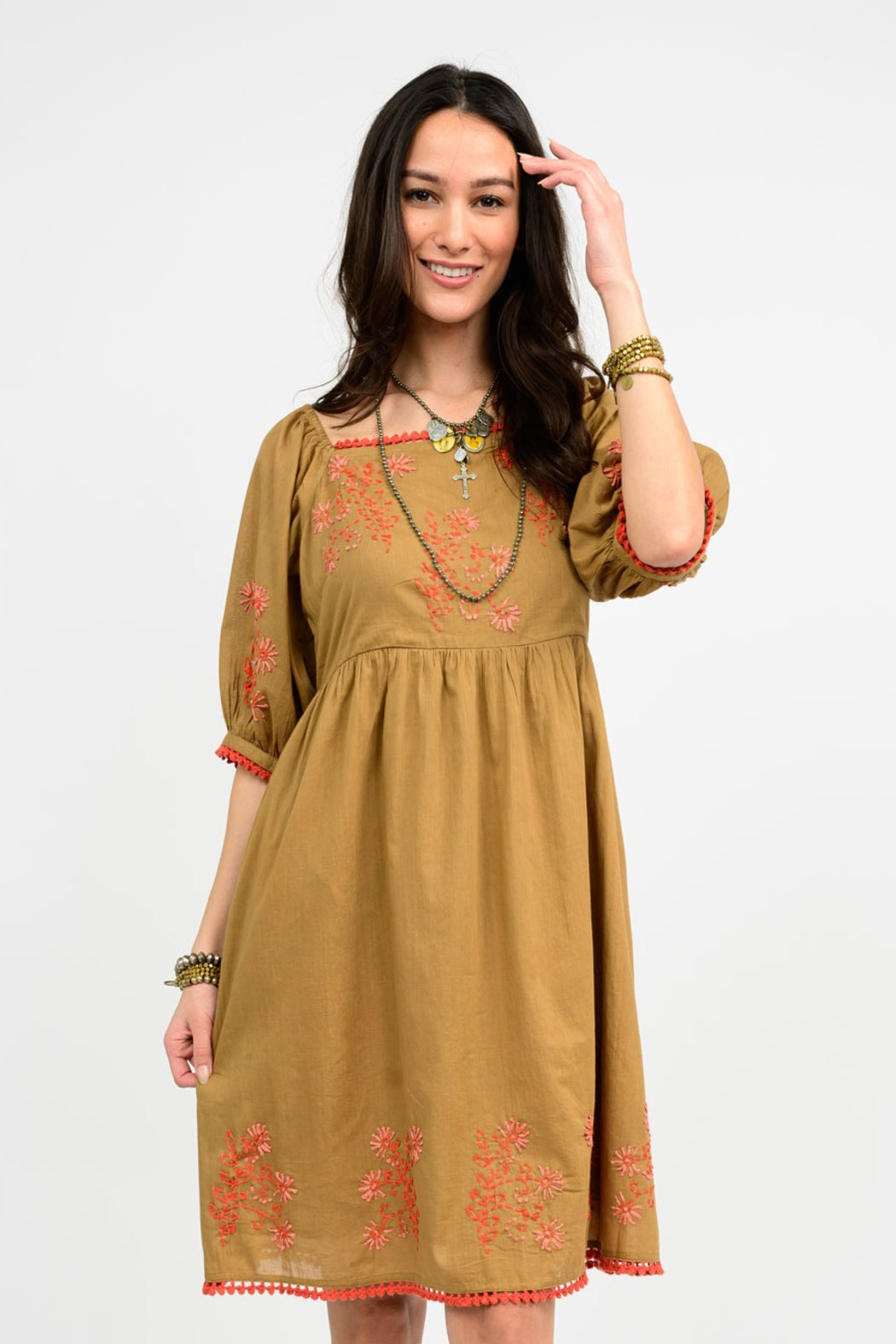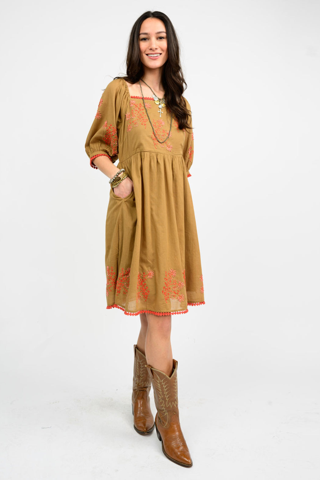 With crochet-style trim and detailed floral embroidery adorning the bodice, sleeves and hem, you can tell isn't Ivy Jane's first fashion rodeo! Shirring on the back and elastic along the shoulders gives the dress a custom fit, and 100% cotton fabric with pockets in the side seams make it practical.