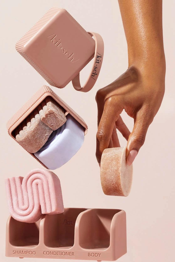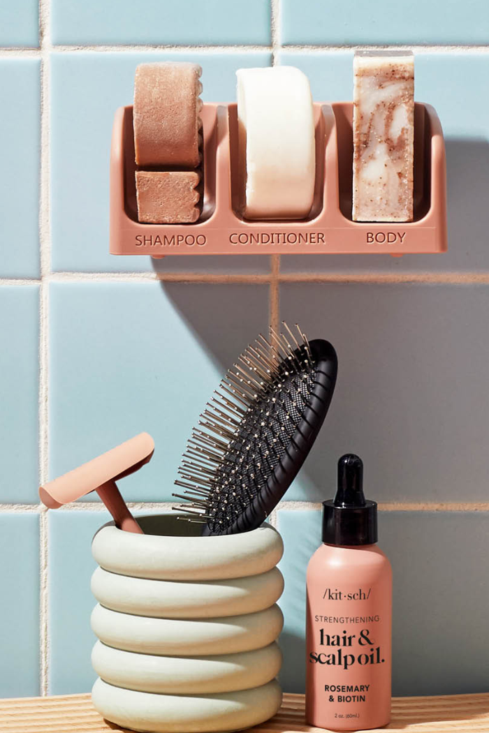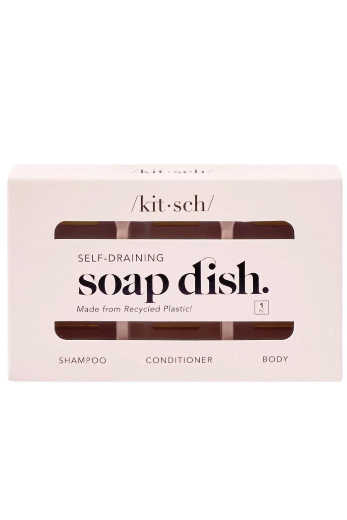 Ensure your Bottle-Free Beauty faves stay clean & organized in the shower with this must-have soap dish. It features a chic, self-draining design to keep your bars dry & fresh so you can enjoy them longer. - Chic, functional soap dish designed to hold up to 3 bars (compatible with all Kitsch Bottle Free Beauty bars) - Features dividers for mess-free storage