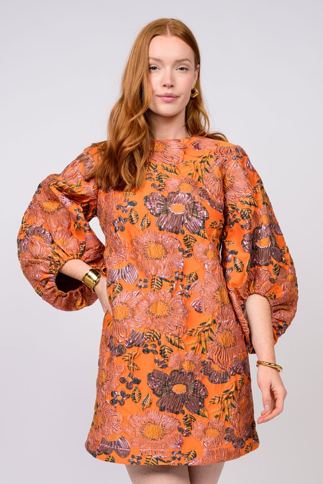 This stunning brocade shift finished with an all-over floral jacquard patten that gives a vintage-inspired, dressy feel. The Brocade Shift Dress hits at mid-thigh and features gathered three-quarter sleeves. It’s perfect for cocktail hours, wedding-guest looks, or any occasion that calls for a polished statement.
