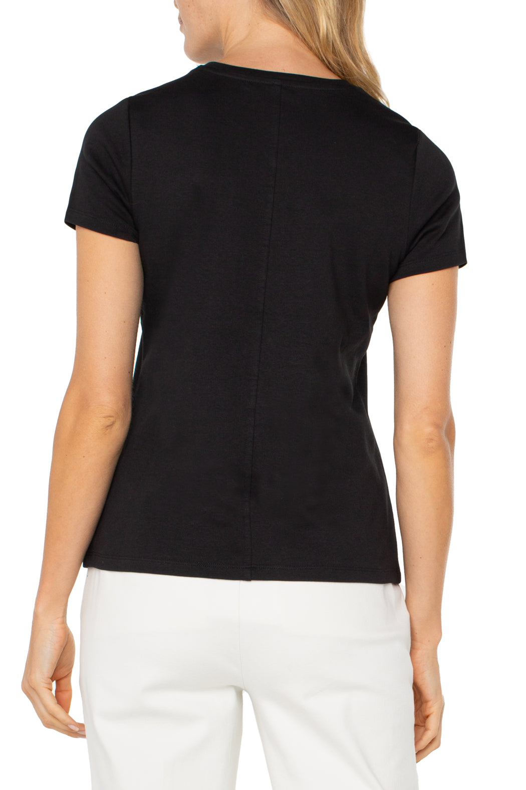 Your new go-to for effortless style, this Liverpool crew neck knit tee is a foundational piece for any wardrobe. This classic black t-shirt is designed with a timeless silhouette and made from a soft, high-quality knit fabric that feels amazing against your skin. Its versatile design makes it the perfect starting point for countless outfits, from casual to chic.