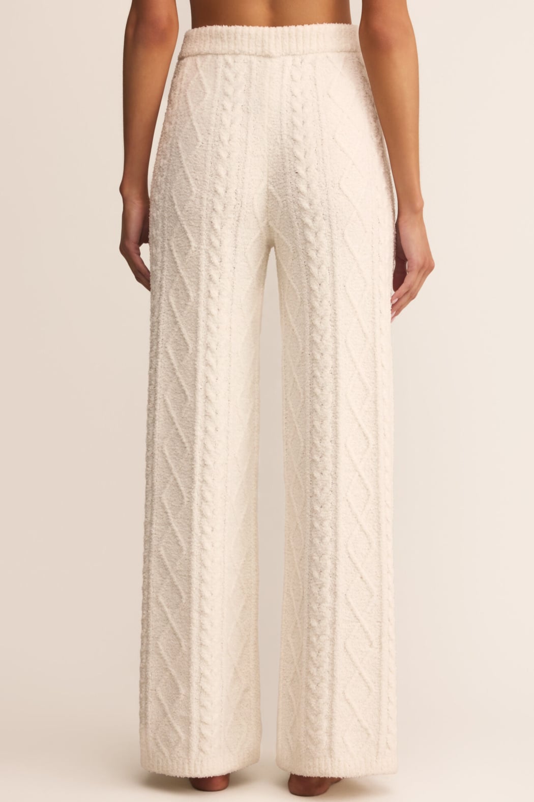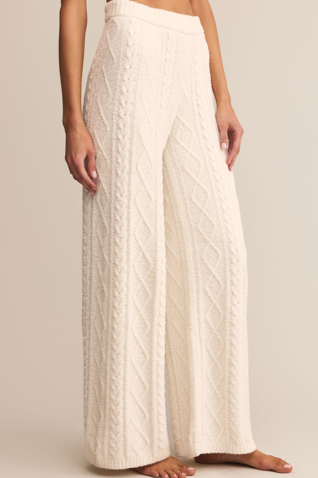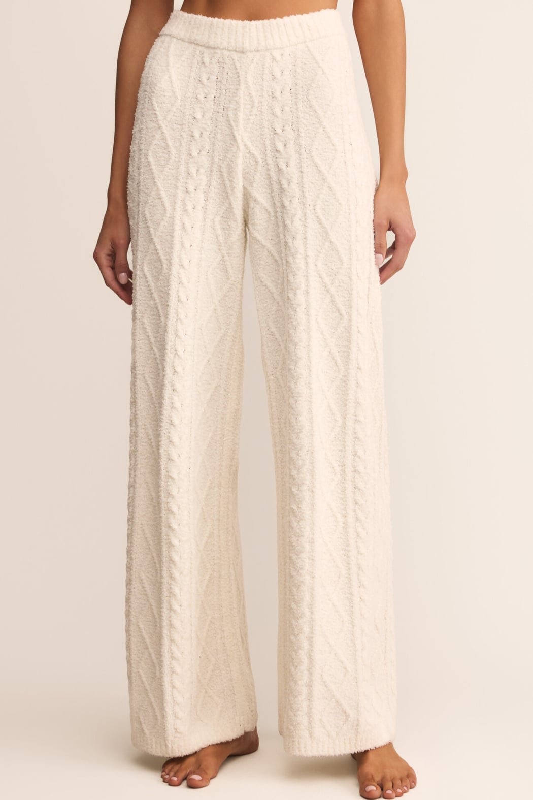 Soft, cable-knit wide-leg pants perfect for relaxed days at home. The Gemma Cable Pant from Z Supply is crafted in a textured sweater knit with a high rise and an elastic waistband for easy comfort. The roomy, long silhouette drapes to the ankle and reads cozy yet polished when paired with a matching top. Wear them for lounging or low-key errands when you want an elevated knit look.