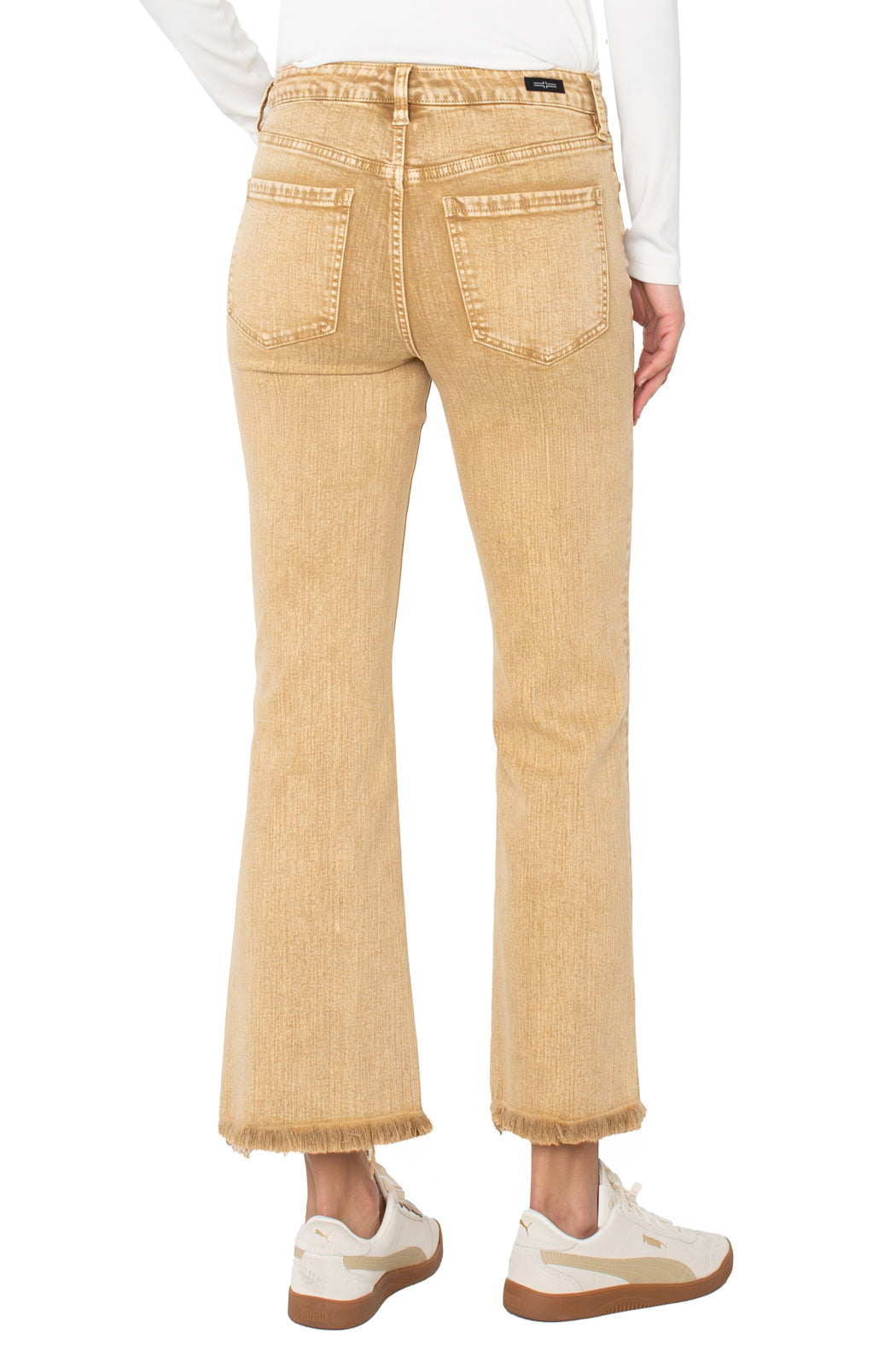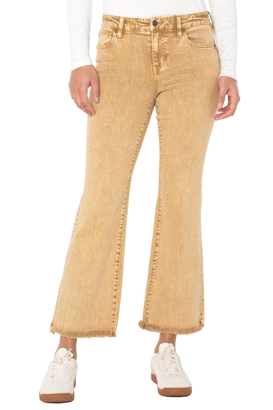 Embrace laid-back style with a touch of retro flair in our Liverpool Hannah Cropped Flare Jeans. Crafted from a comfortable stretch denim, these jeans offer a flattering, high-rise fit that sits perfectly at the waist. The unique, sun-washed yellow hue brings a warm, earthy tone to your wardrobe, making them a versatile piece for any season.