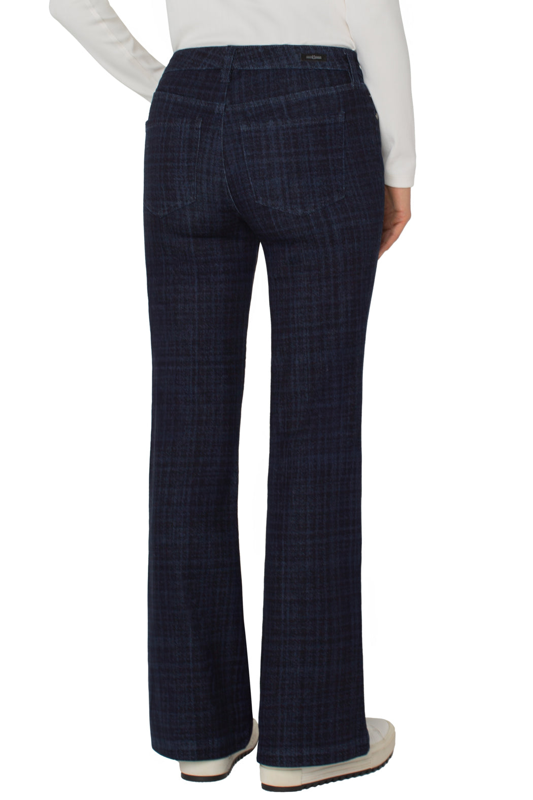 The Hannah Flare brings a retro-inspired silhouette into the now. Designed in a tonal indigo plaid, it offers a fresh take on classic denim with subtle pattern play. Finished with five-pocket styling and a clean waistband, it’s the pair that turns everyday outfits into a moment.