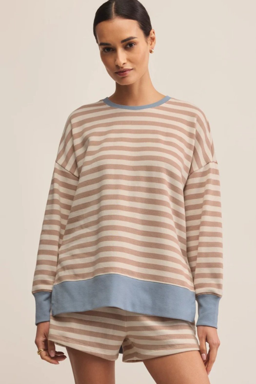 These soft fleece shorts feature a relaxed fit and drawcord waistband for laid-back ease. The standout stripe detail adds a playful twist to your everyday lounge look.
