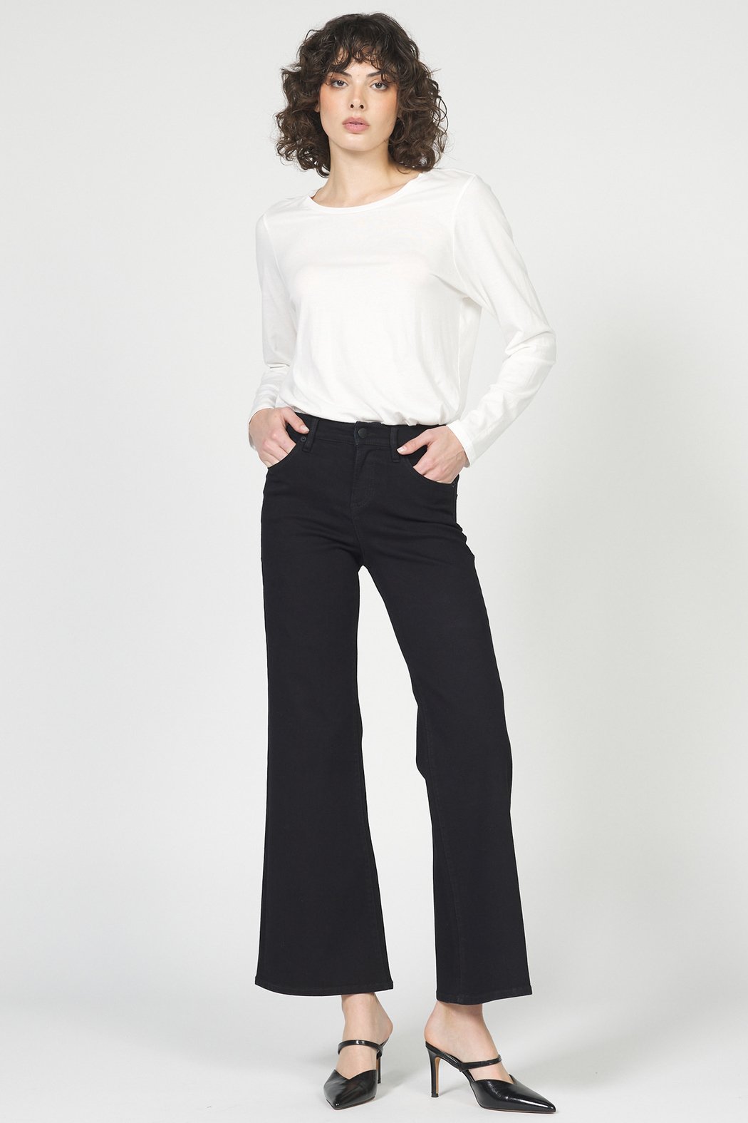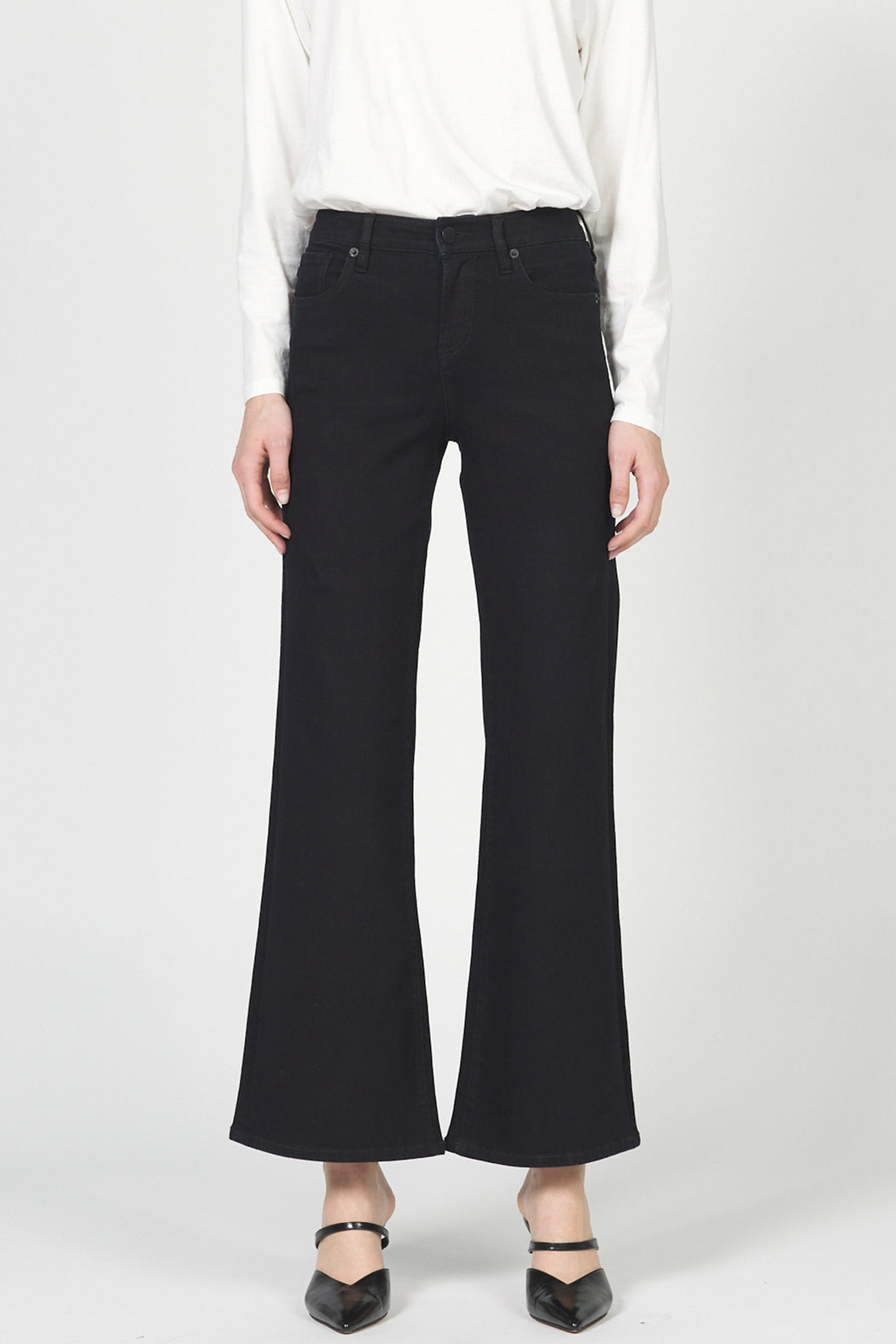The Micah Mid Rise Jean is a mid-rise denim with a modern flare silhouette that skims the ankle and elongates the leg. Made by Dear John, these jeans feature a sleek black wash and classic five-pocket styling for easy everyday wear. The structured denim holds shape while offering a polished yet casual look perfect for dressing up or down. Pair with heels or a tee for versatile seasonless outfits.