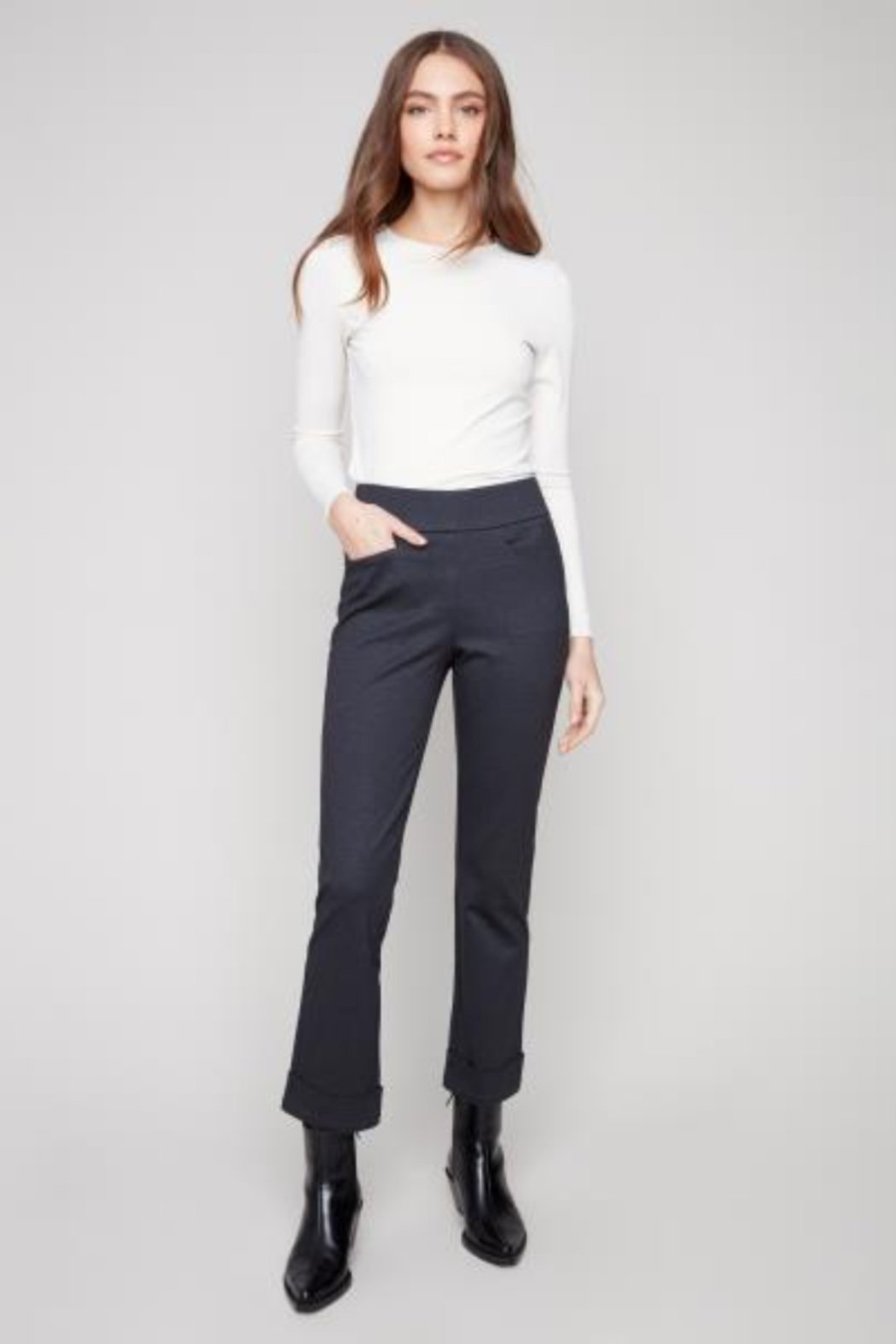 A great slight printed pant with a cuff. These a ready to go with you to the office all day. They have spandex in them so have that great stretch for all day comfort. Pair back with your favorite work top!