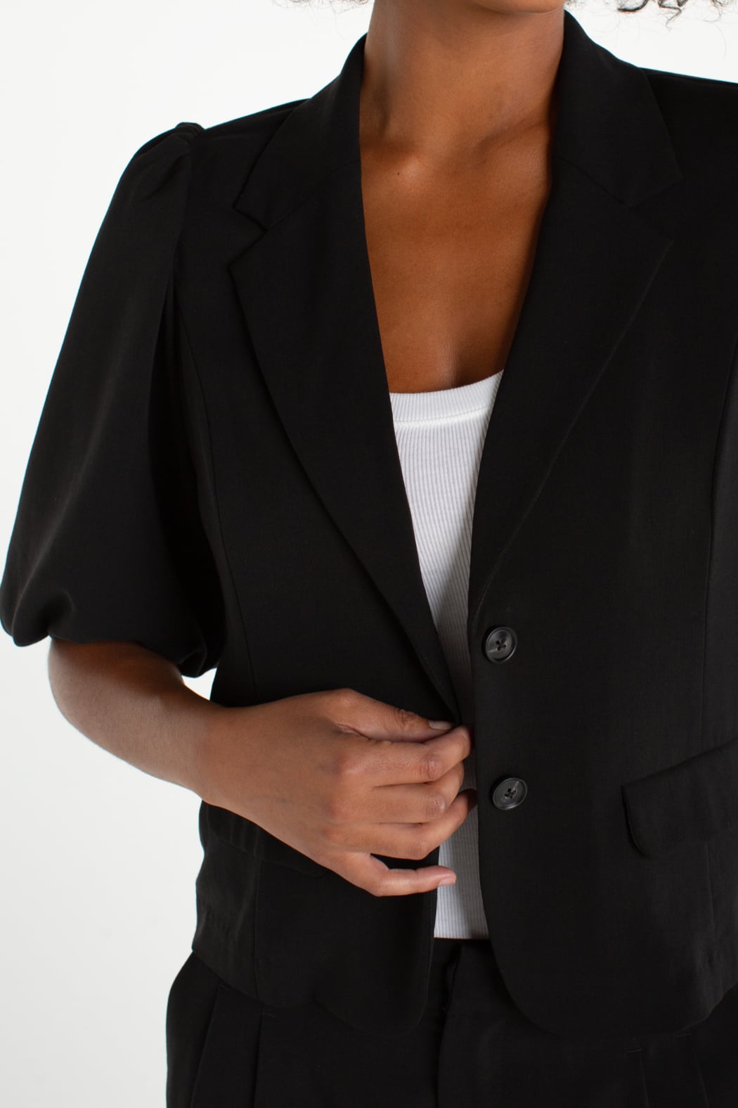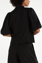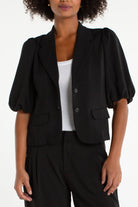 A tailored short blazer with dramatic balloon sleeves and a cropped, popover silhouette ideal for elevated day-to-night dressing. The Popover Balloon Sleeve Blazer from Liverpool pairs structured lapels and front buttons with voluminous elbow-length sleeves for a modern, feminine shape. Lightweight, smooth woven fabric gives it a polished look that layers easily over tees or blouses. Style it with matching trousers or high-waist denim for a chic, contemporary suit moment.