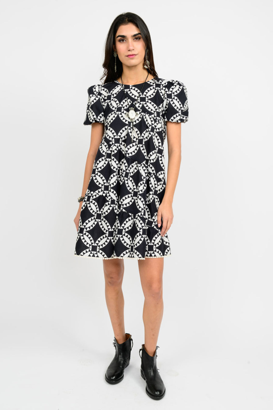 We are mesmerized by the pattern on this 100% cotton dress! Featuring gathered shoulders and asymmetrical seams aross the bodice and hem, this versatile piece can be dressed down for running errands or jazzed up for a night out dancing. Did we mention it has pockets?
