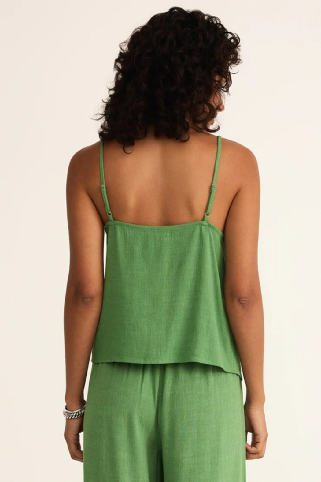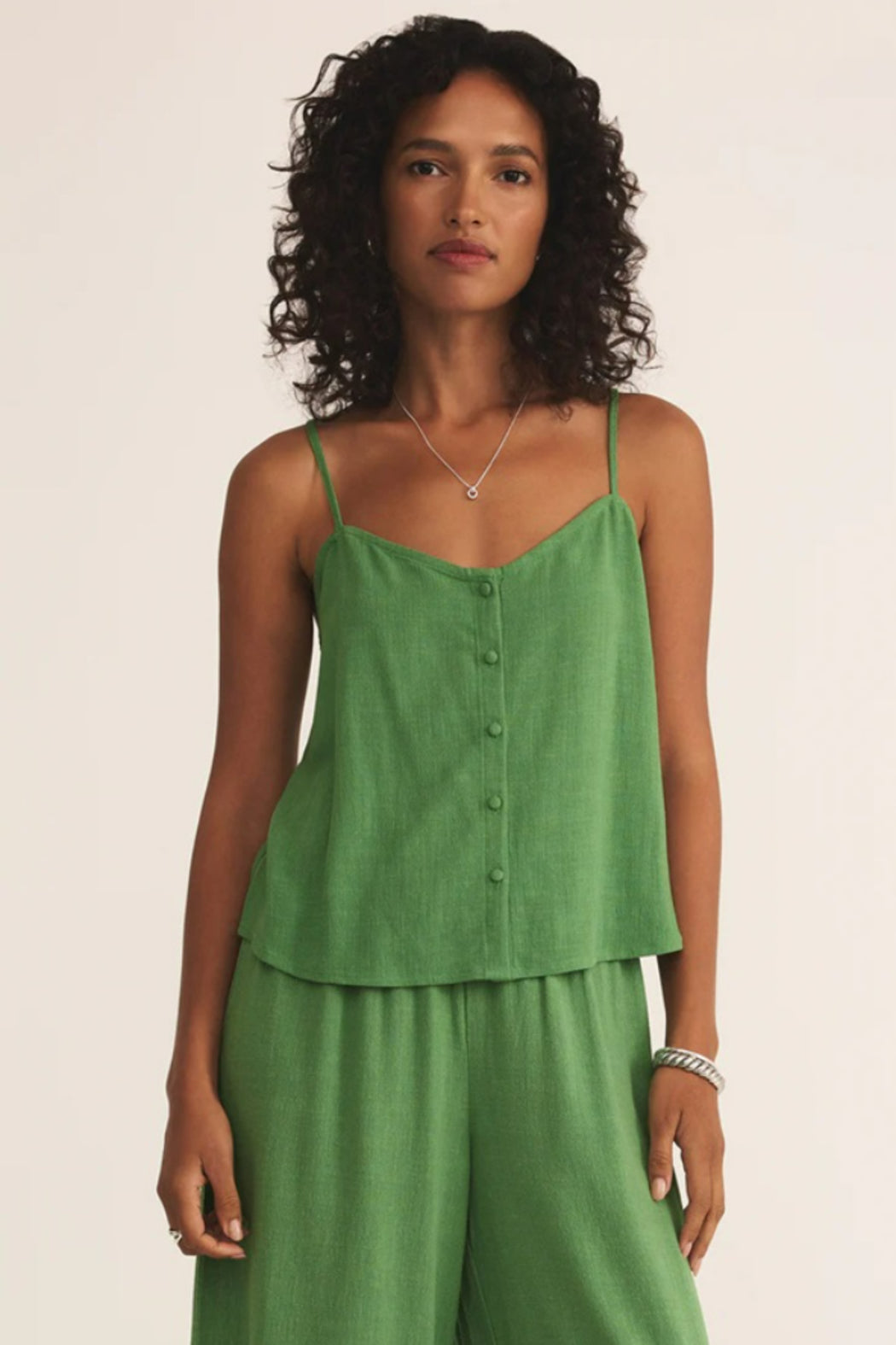 Airy with a novelty textured stripe, this v-neck tank brings a fresh take on warm-weather style. Finished with a button front, straight back, and adjustable o-ring straps, it’s relaxed, breathable, and made to move with you. Fabric blend of 86% rayon and 14% linen.