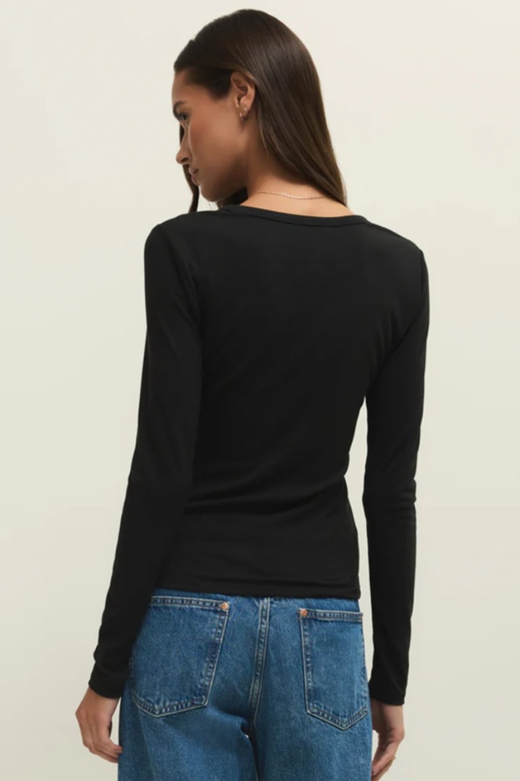 Smooth, lightweight, and body skimming. This crew neck top is made from our signature Second Skin Baby Rib with a touch of stretch for a flawless fit. It can be worn tucked or untucked and is easily layered over, making it a year-round go-to.