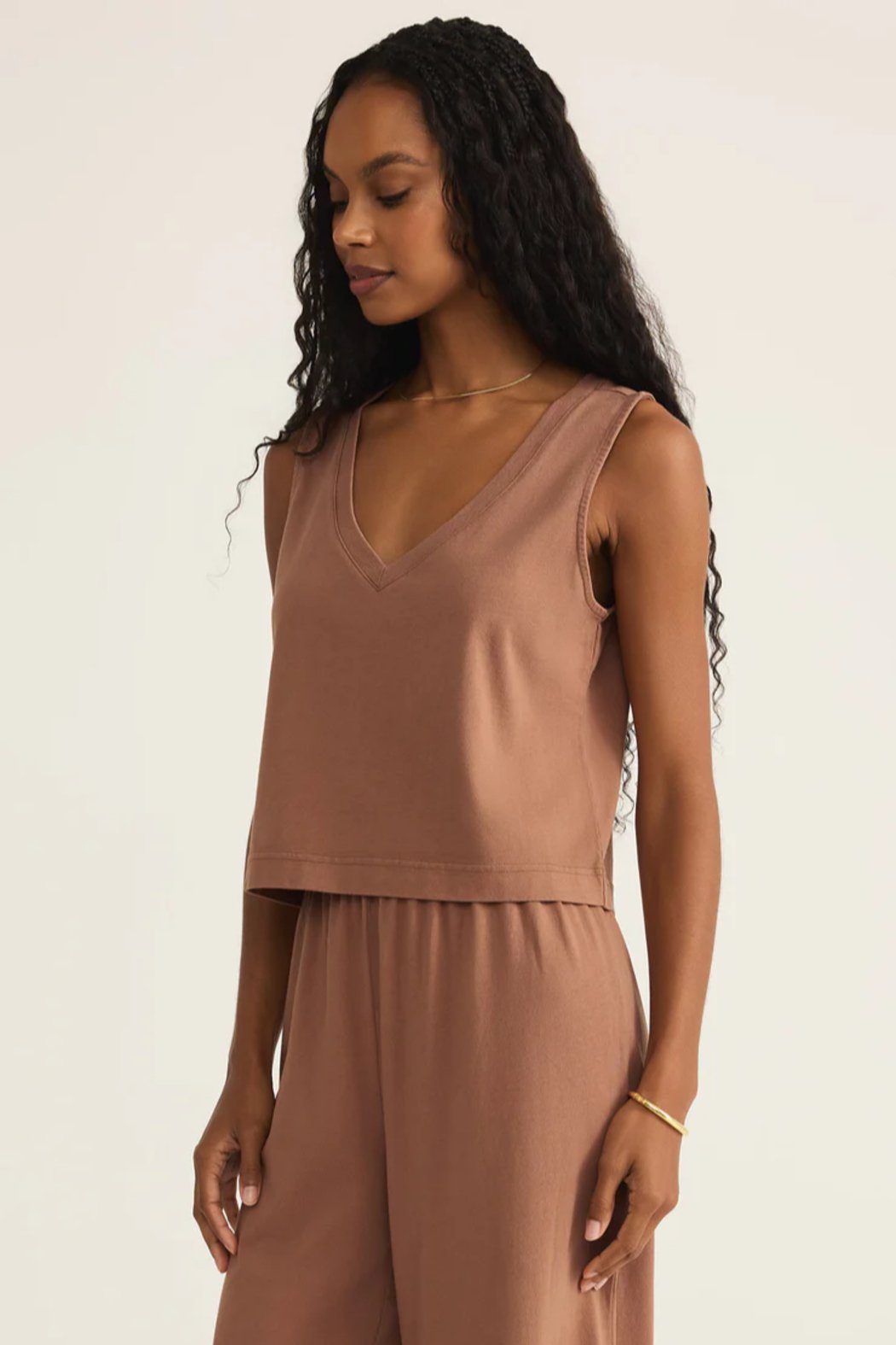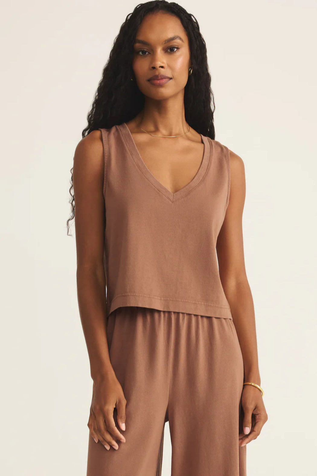 Our popular Sloane V-Neck Top now comes in this flattering v-neck version. Lightweight and made of cotton jersey fabric, this relaxed top is a versatile and effortless everyday piece, meant to be worn on its own. - Relaxed fit - Cotton Jersey: 100% Cotton - V-Neck - Sleeveless - Strap Detail - Lightweight - Soft jersey knit - Machine Wash Cold, Hang to Dry, Warm Iron if Needed
