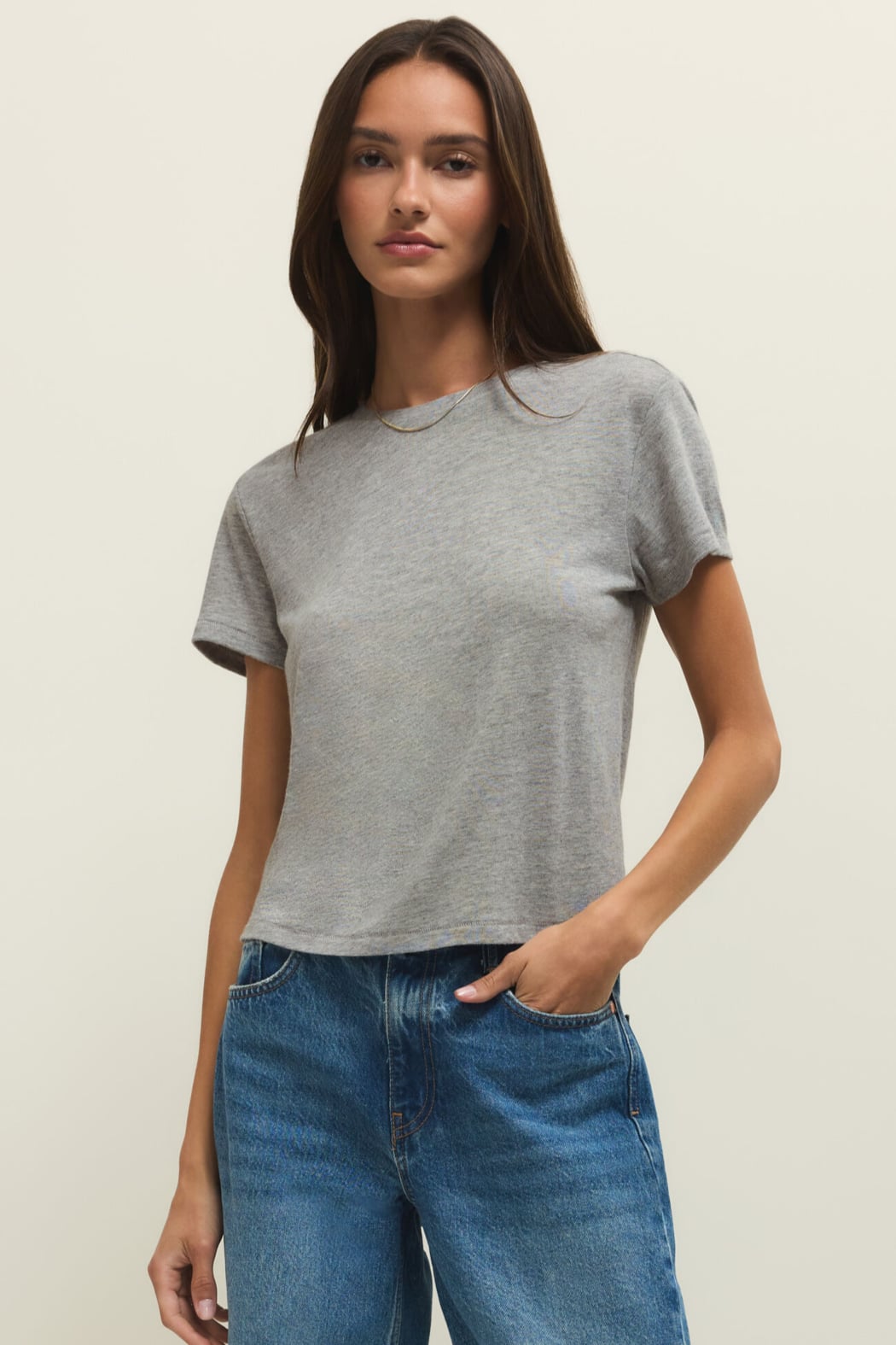 Soft and airy with just enough texture, this short sleeve crew neck tee is made from loose knit jersey for that effortlessly relaxed feel. The ladder stitch detail adds a touch of something special to your everyday rotation.