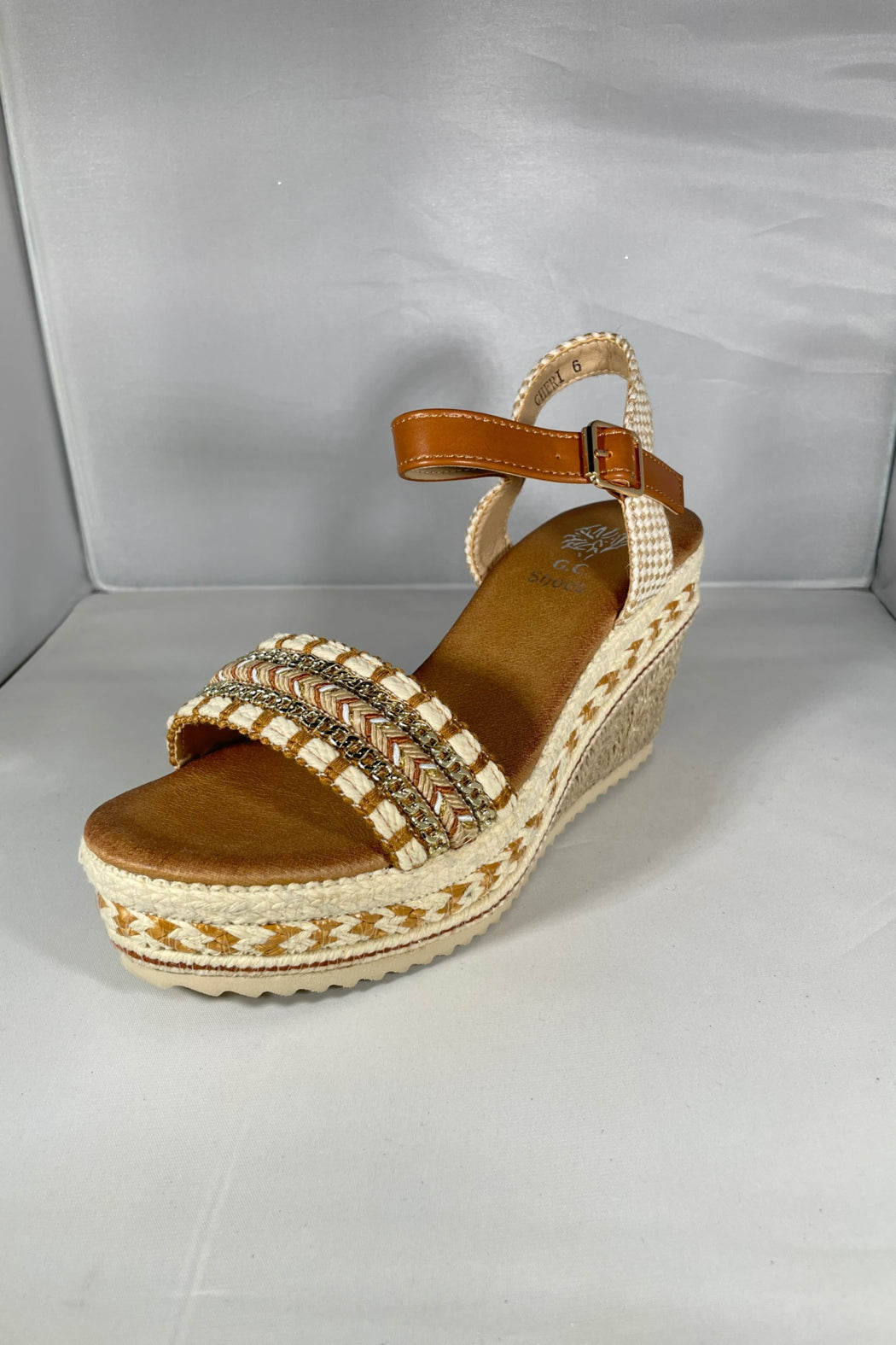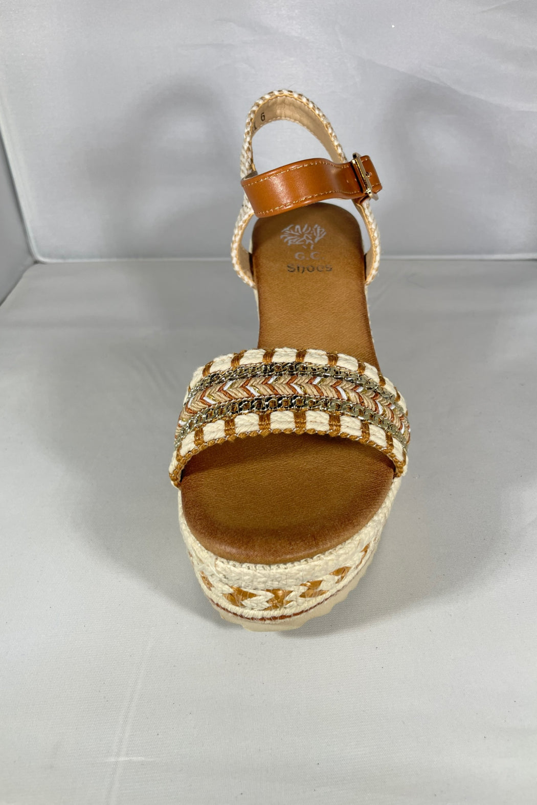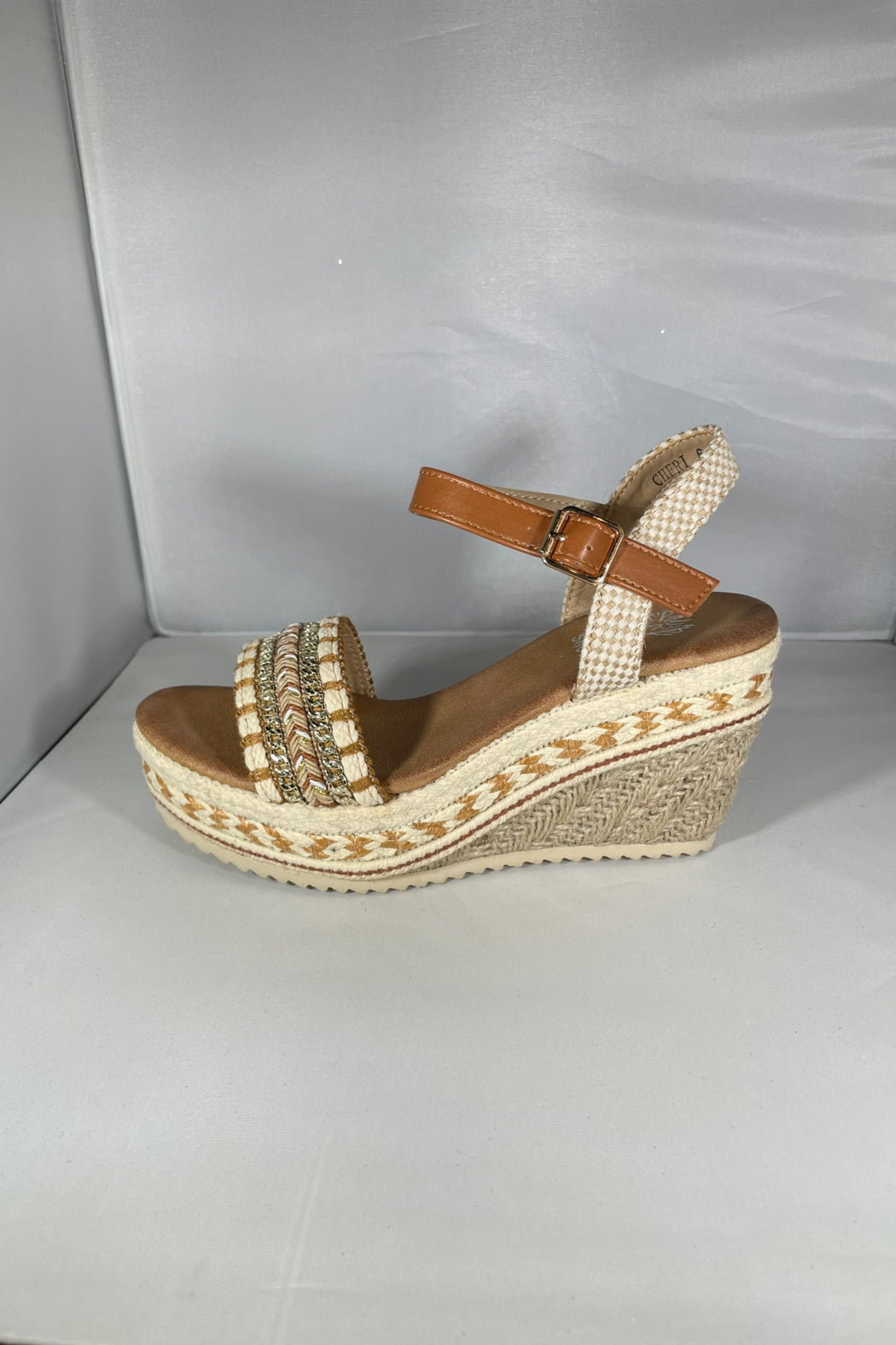 The Cheri espadrille platform sandal is a shoe you can wear all summer long. The sandal features unique details on the front strap and a rope detail wedge heel. It has a 3.25" heel height with a 1.5" platform. These shoes could easily be dressed up or dressed down.